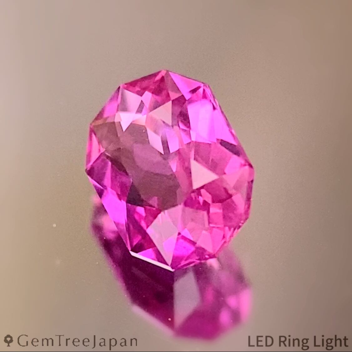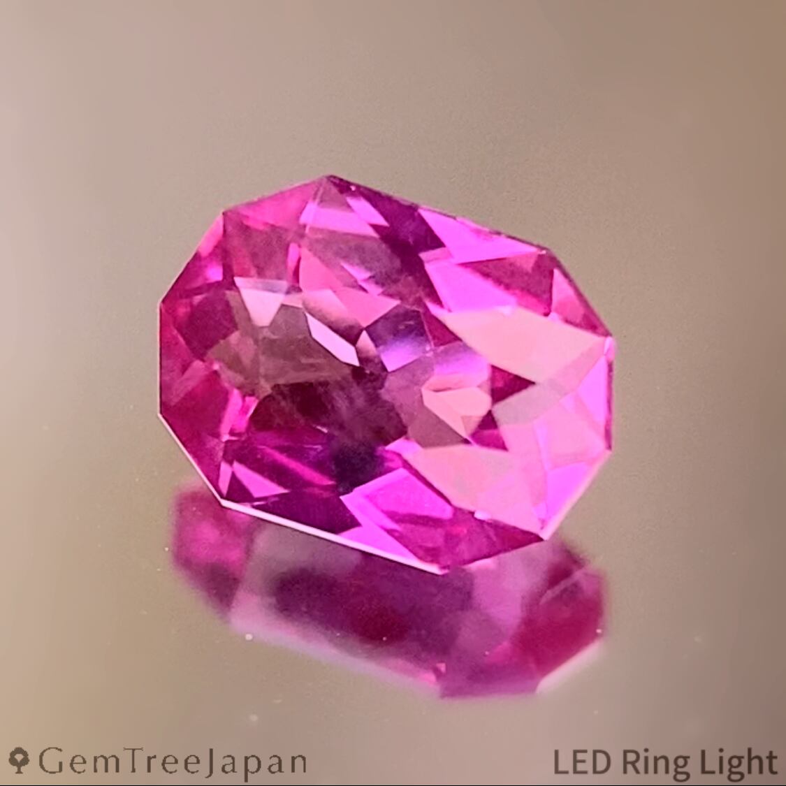 明るく鮮やかなパープリッシュピンクにオレンジを一滴落としたようなカラーで、角度によってパープルやオレンジーピンクが現れます。