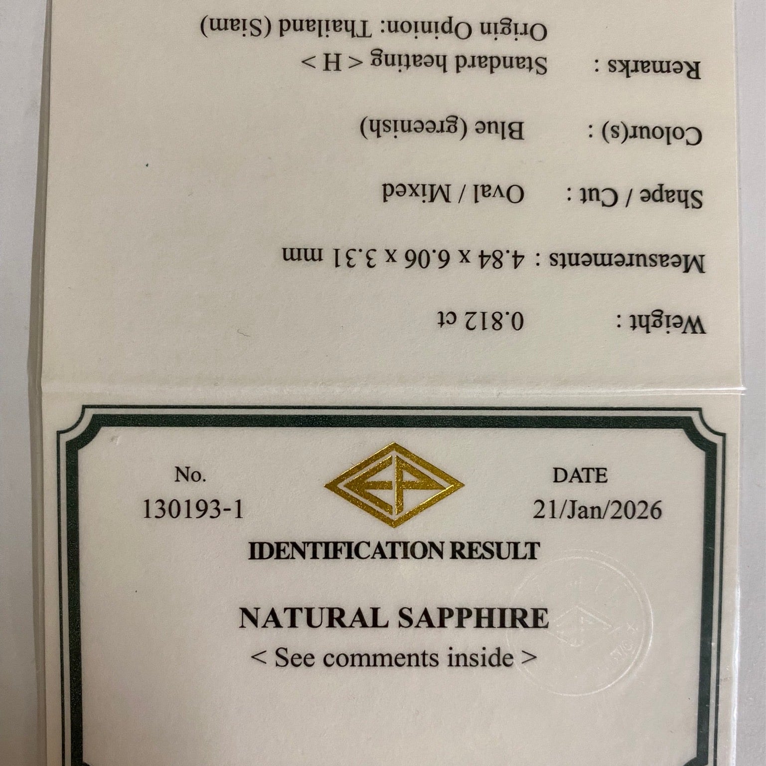 グリニッシュブルーサファイア 0.812ct