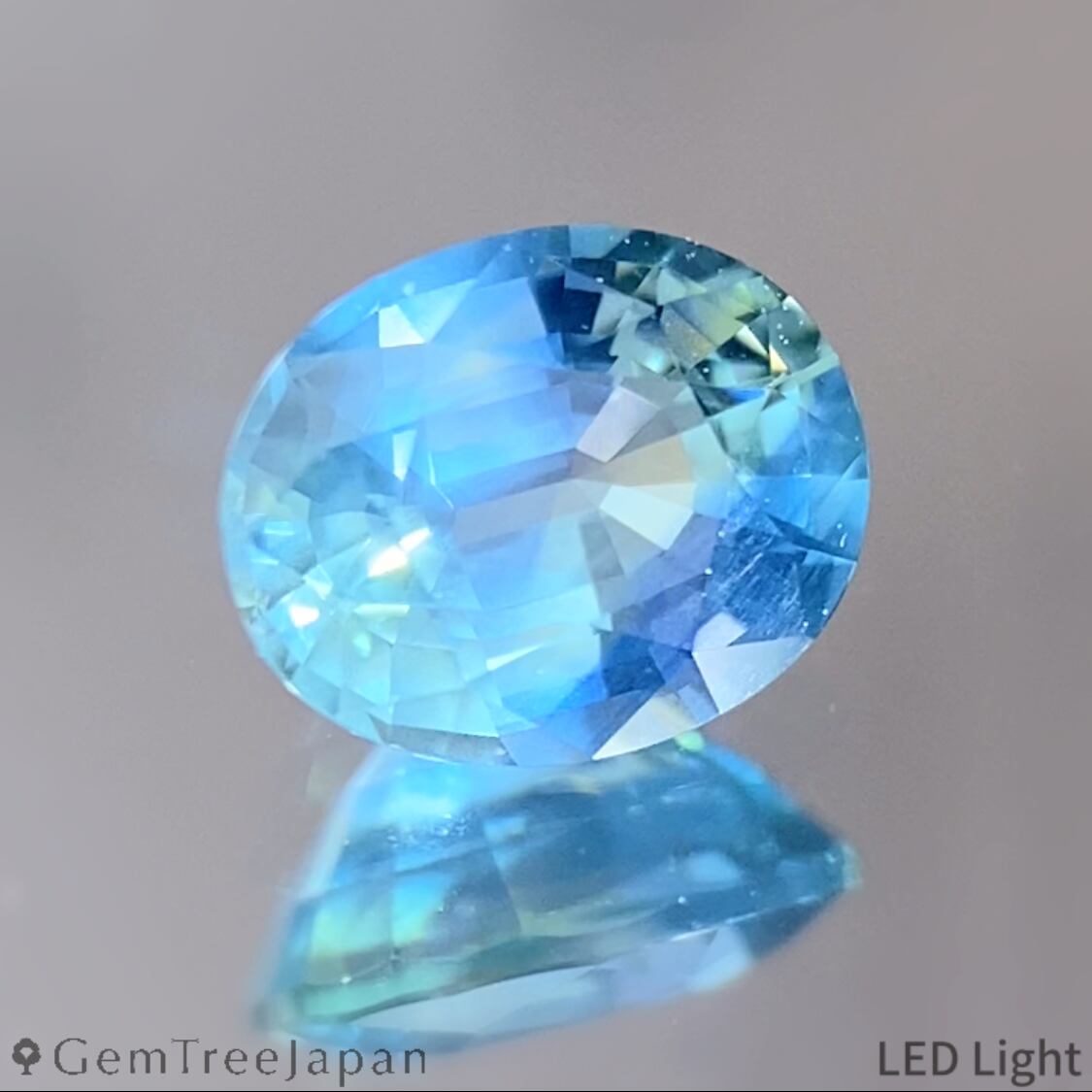 LEDライト下では、内部に分布するシルクインクルージョンが青白く浮かび上がり、柔らかな光のヴェールをまとったような表情を見せます。