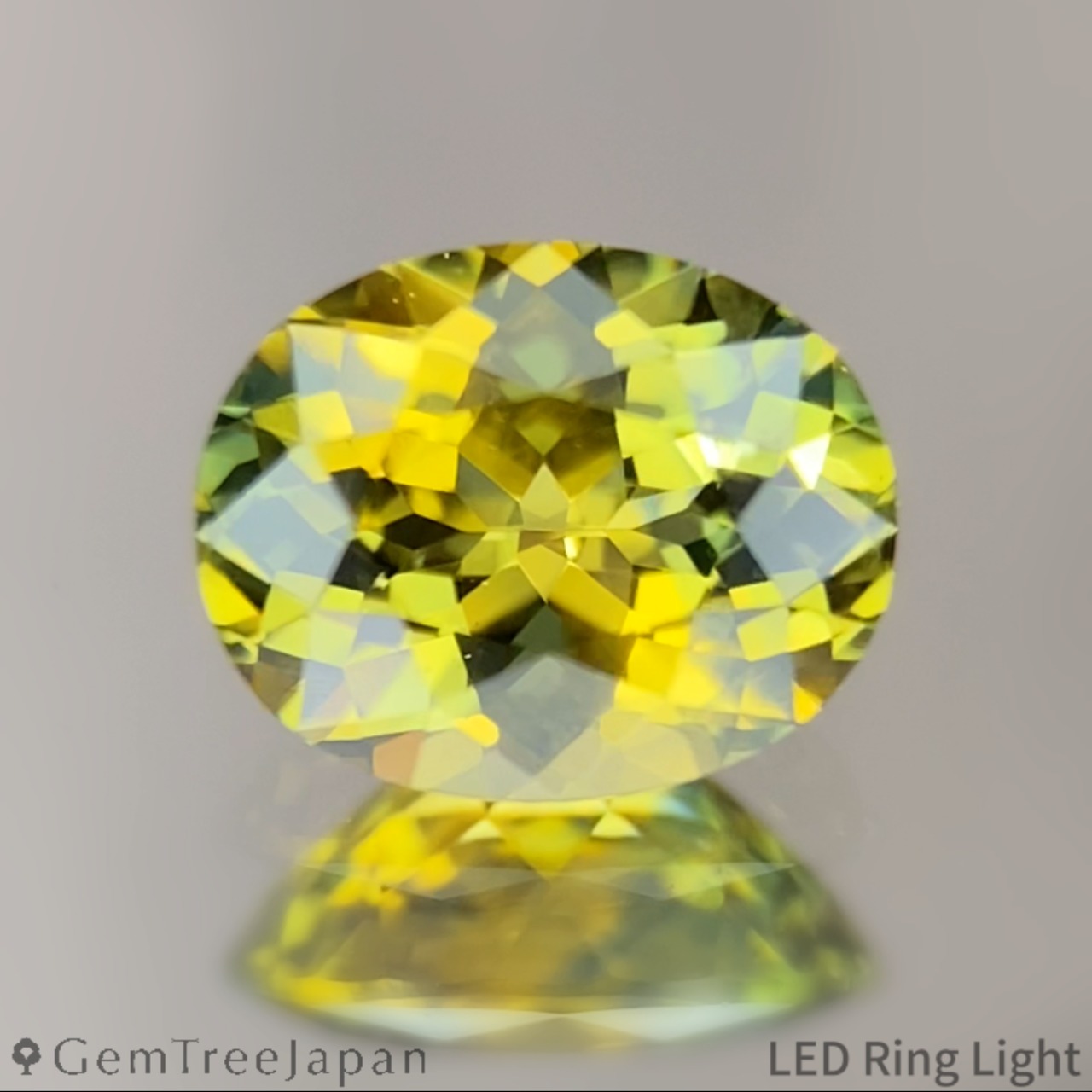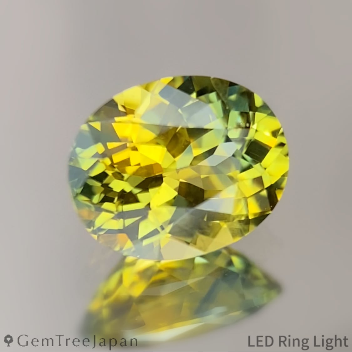 厚みのある美しいプロポーションのフラワーカットによる細かな煌めきに溢れ、鮮やかなイエローとコクのあるグリーンが混ざり合うパーティカラーが美しい一石。