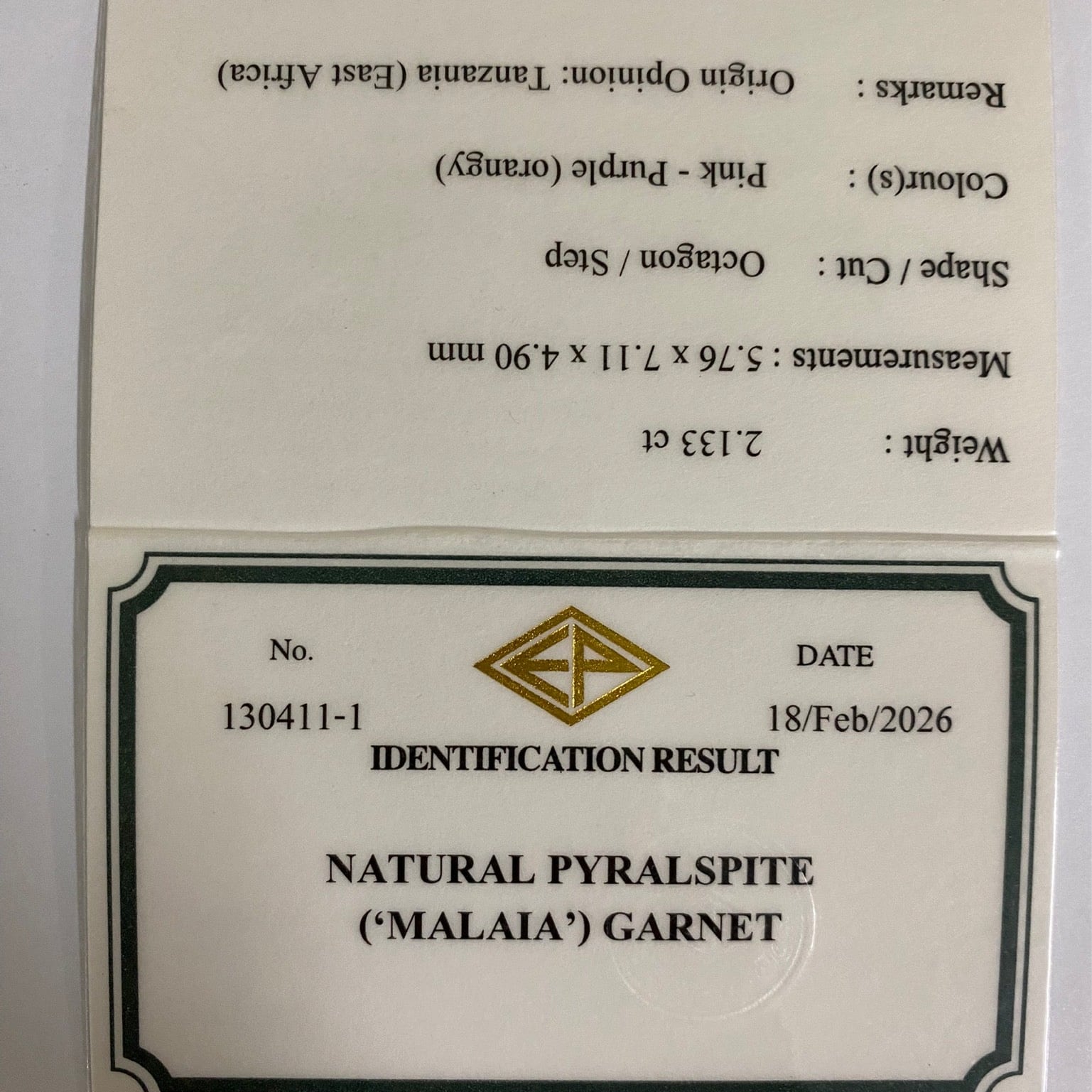 "4-6 Steps" Malaya Garnet (Pyralspite) 2.133ct / Tanzania