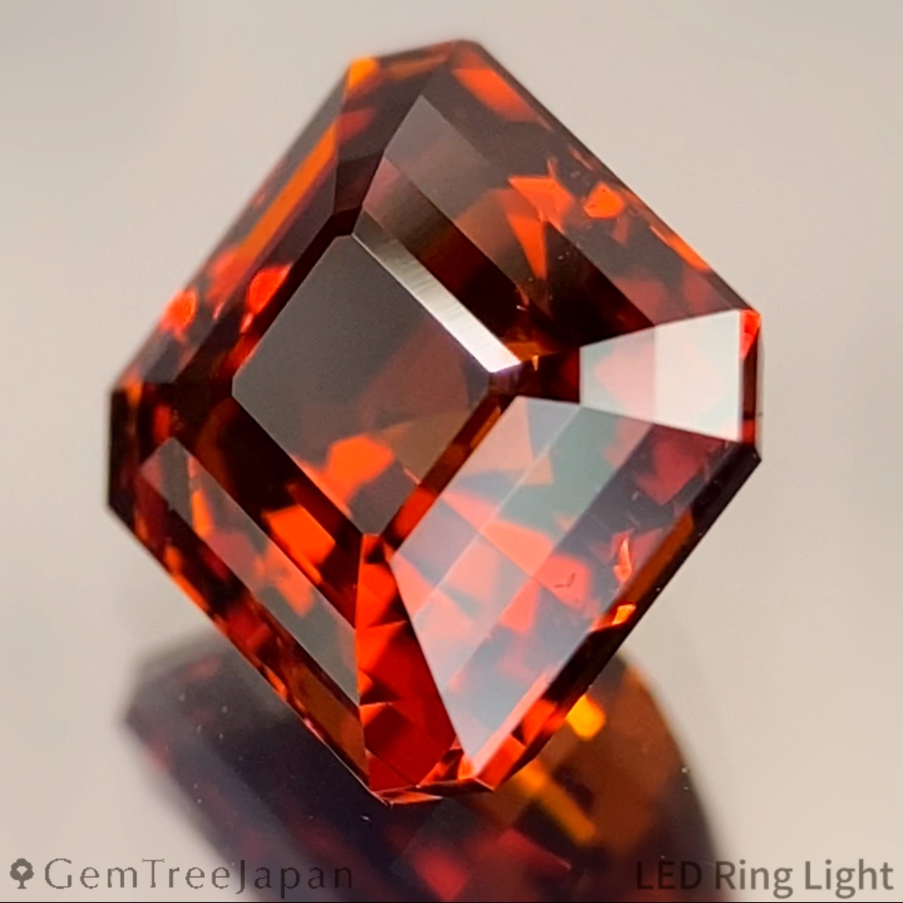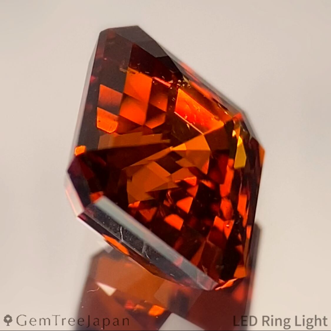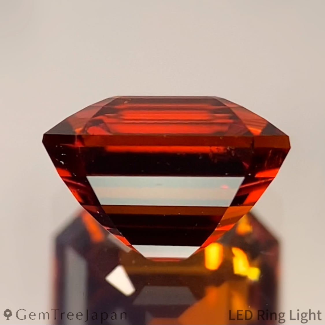 クラウンに4段のステップを、パビリオンに6段のステップを刻んだ、ステップカットの新境地と言えるカットで、元々パビリオン側がたっぷりとした膨らみのあるプロポーションでしたので、テリを最大限に出すためにステップ数を多く刻み出来上がりました。