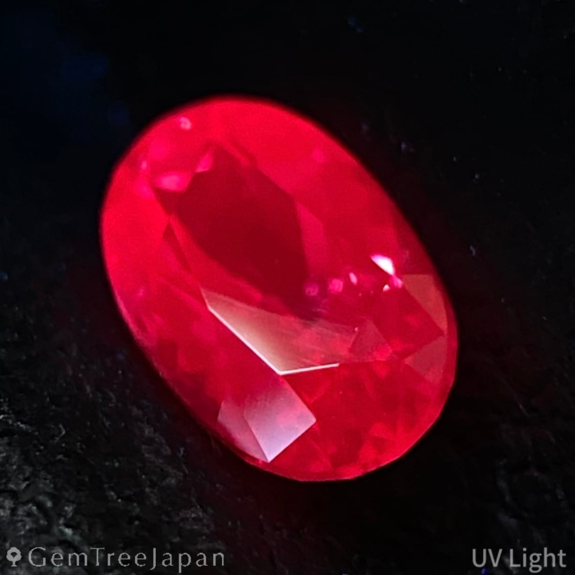 UVライトによる蛍光性は比較的強く、ピンキッシュレッドに蛍光します。