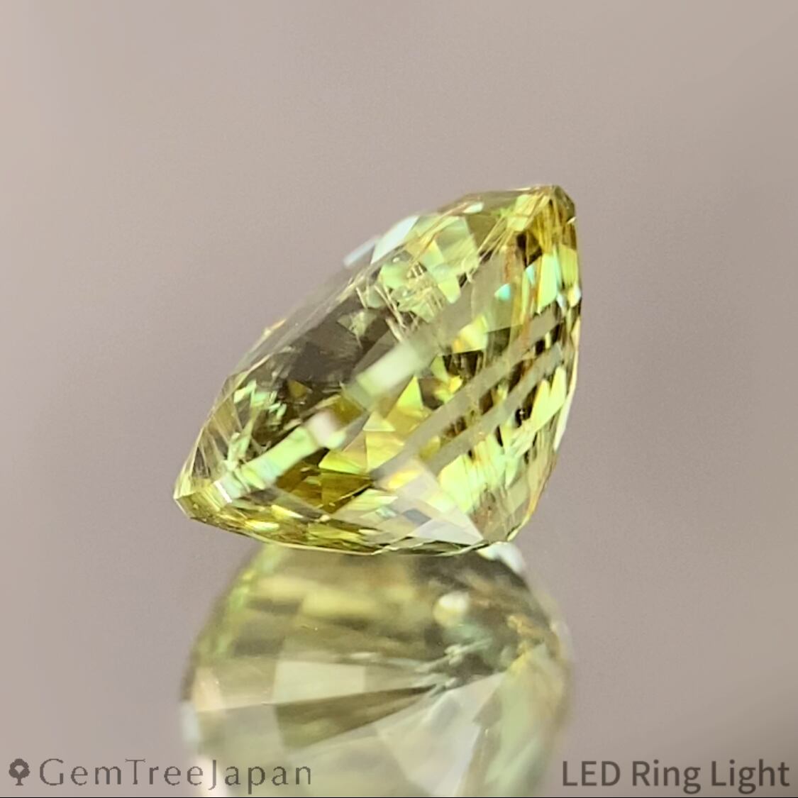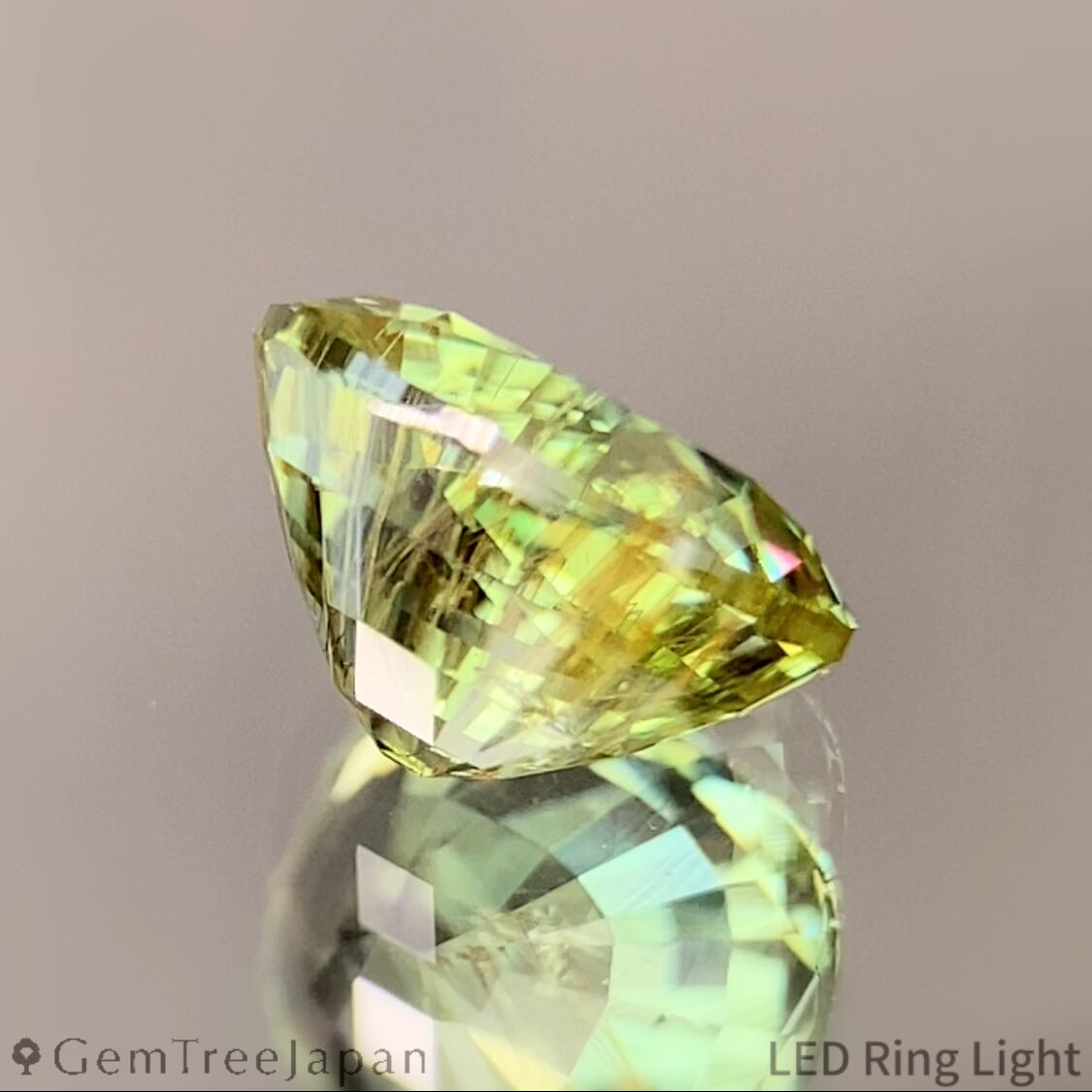 明るくイエローを噛んだグリーンの色合いとUV蛍光はツァボライトの中では希少性が高く、明るいタイプが故にカラフルなファイアーのチラつきも存分に楽しめます。