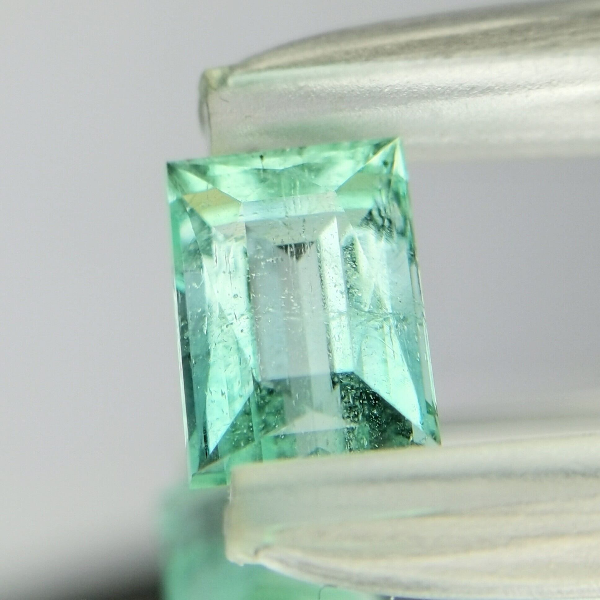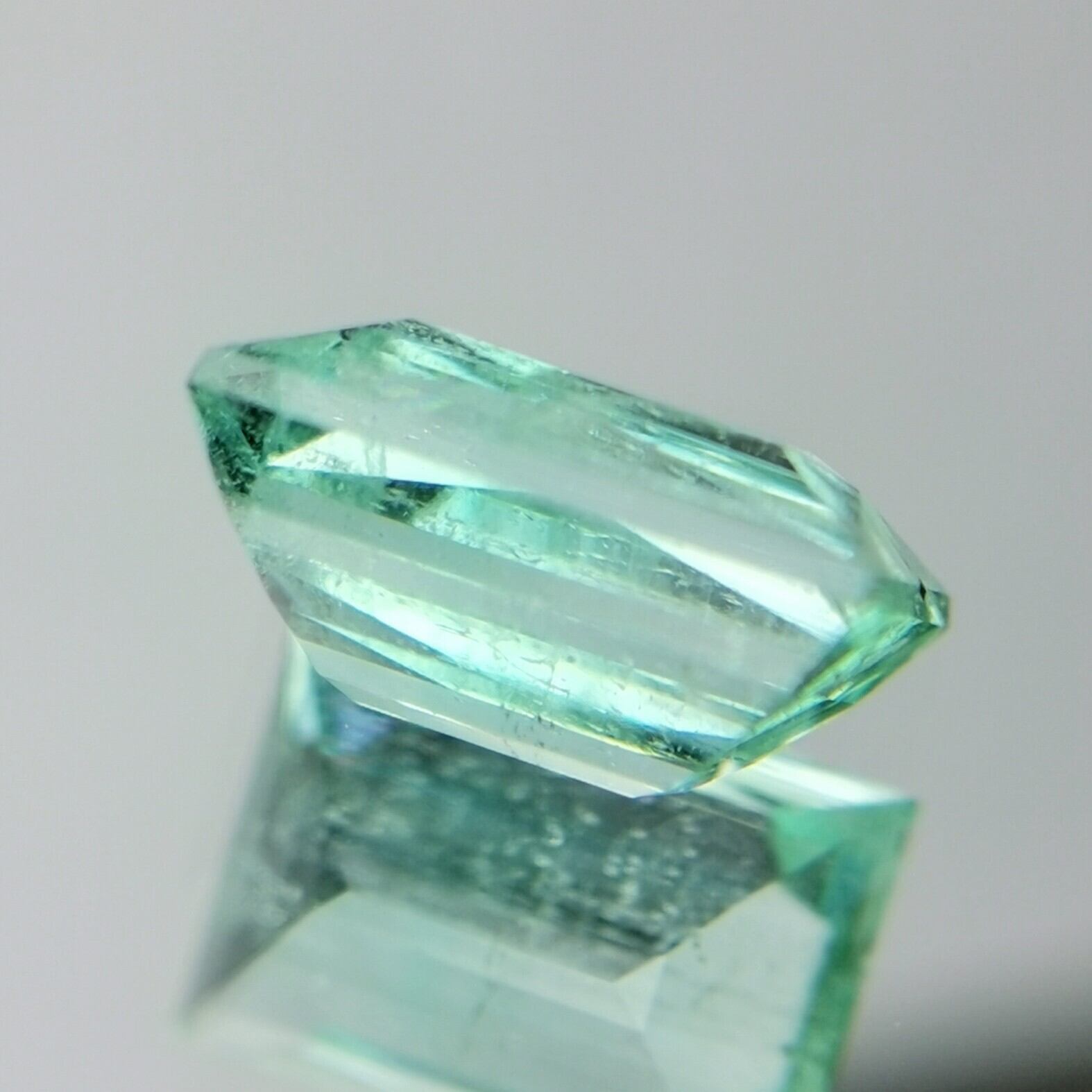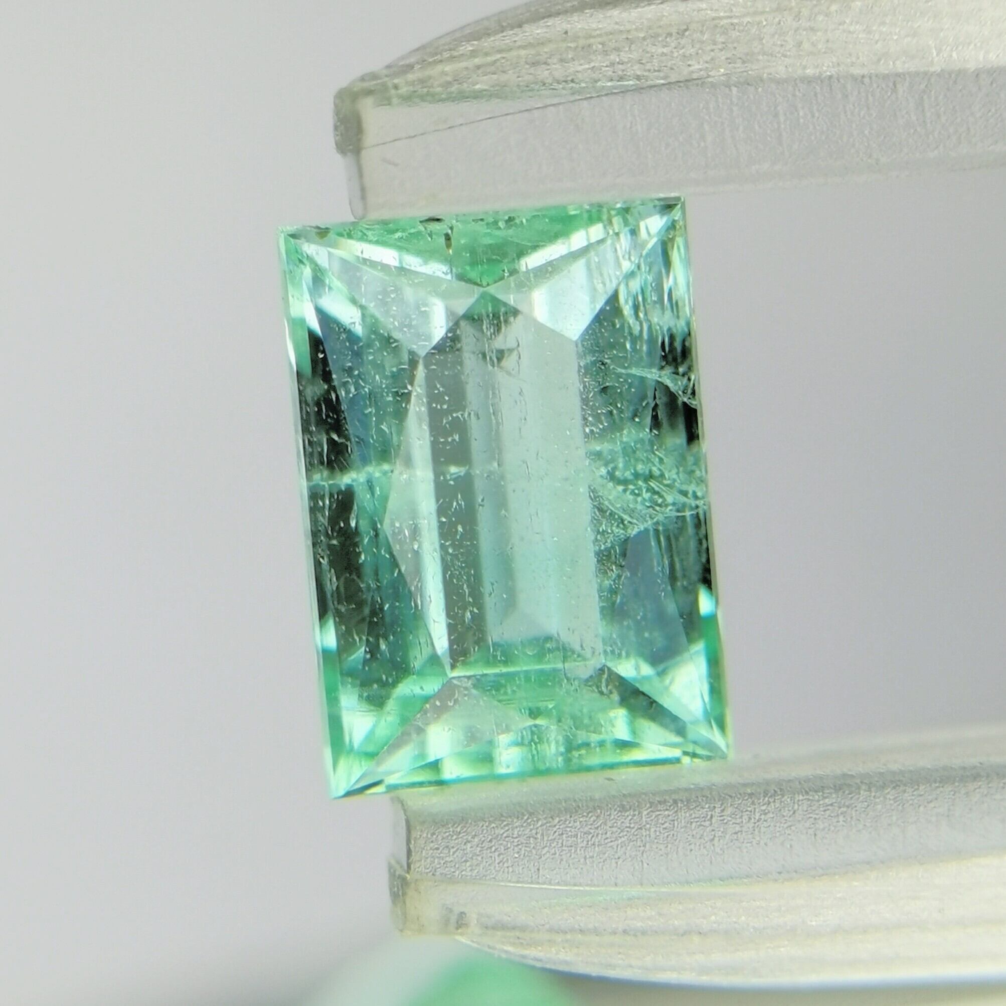 幾つか新出品した中では一番色が濃く、エメラルドカットではありませんが、長めのレクタングル(長方形)がエメラルド感を与えます。色ノリはロシア産エメラルドと同じ位濃く綺麗です。