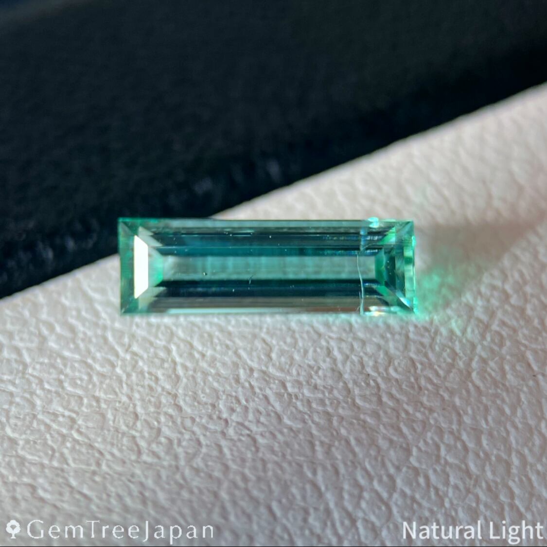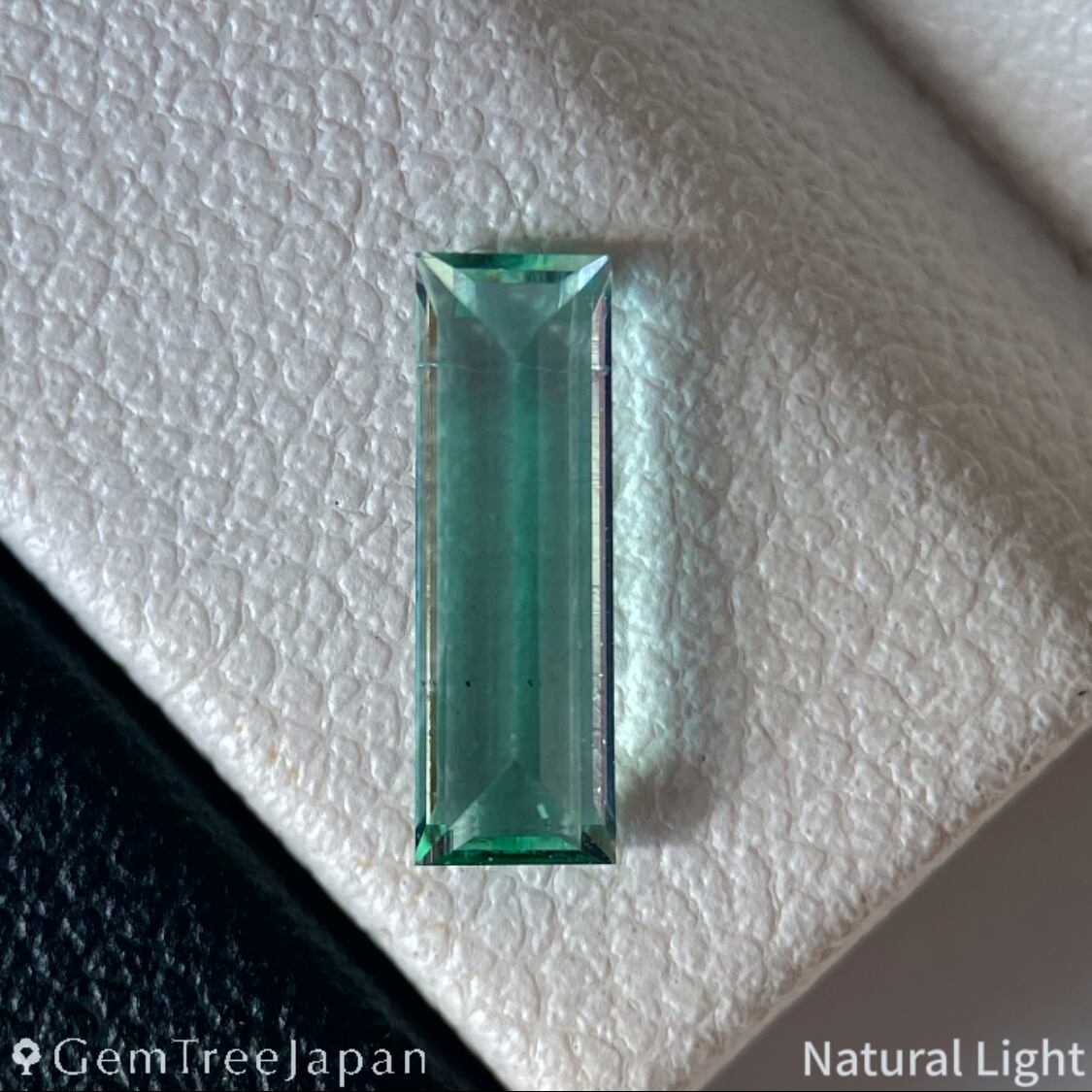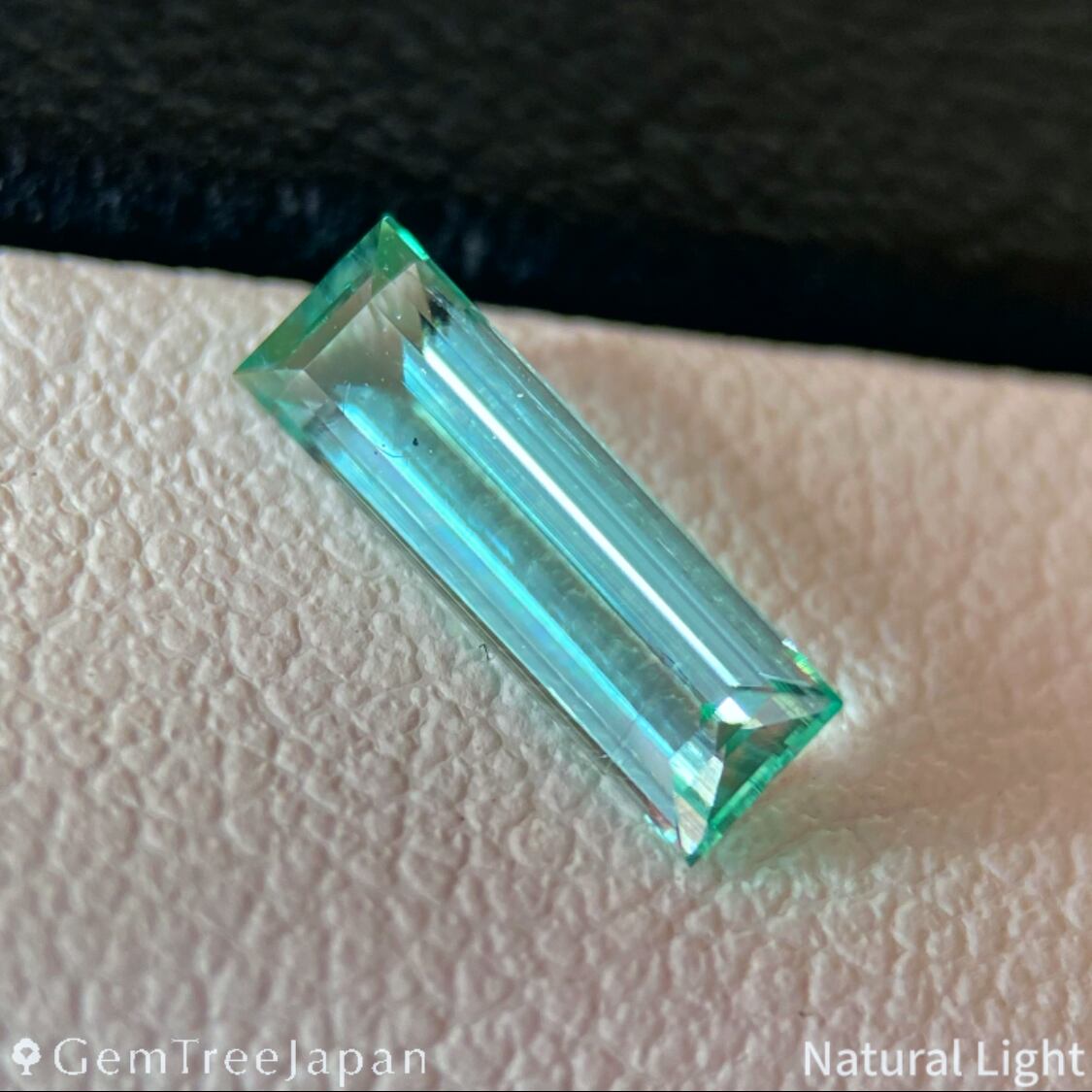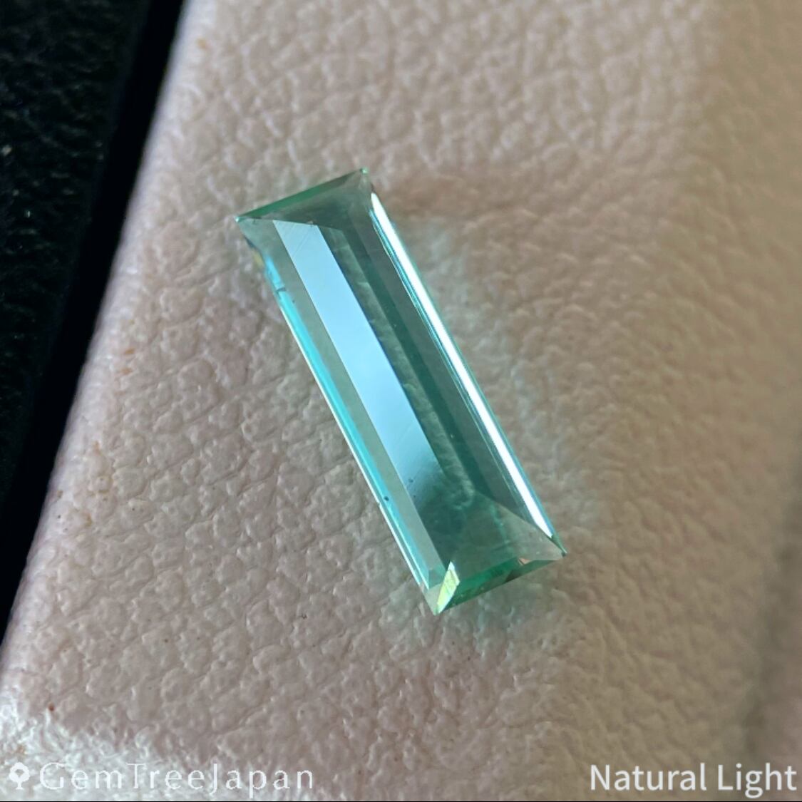 大きさはハーフカラット越えであり、色ノリも良いピースになります。ピアッちゃんのロングレクタングル(長方形)にステップカットが施されています。イメージとしては、アクアマリンに多い形のカットが施されています。