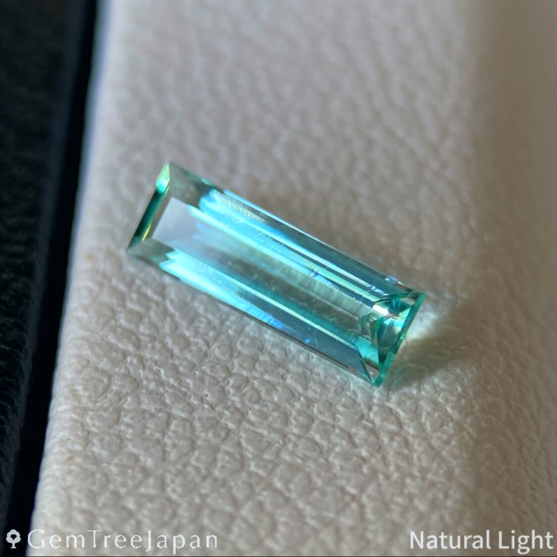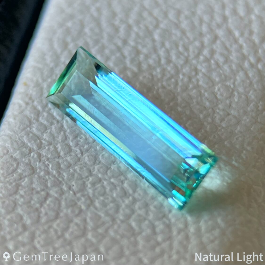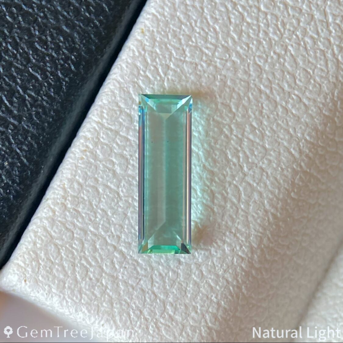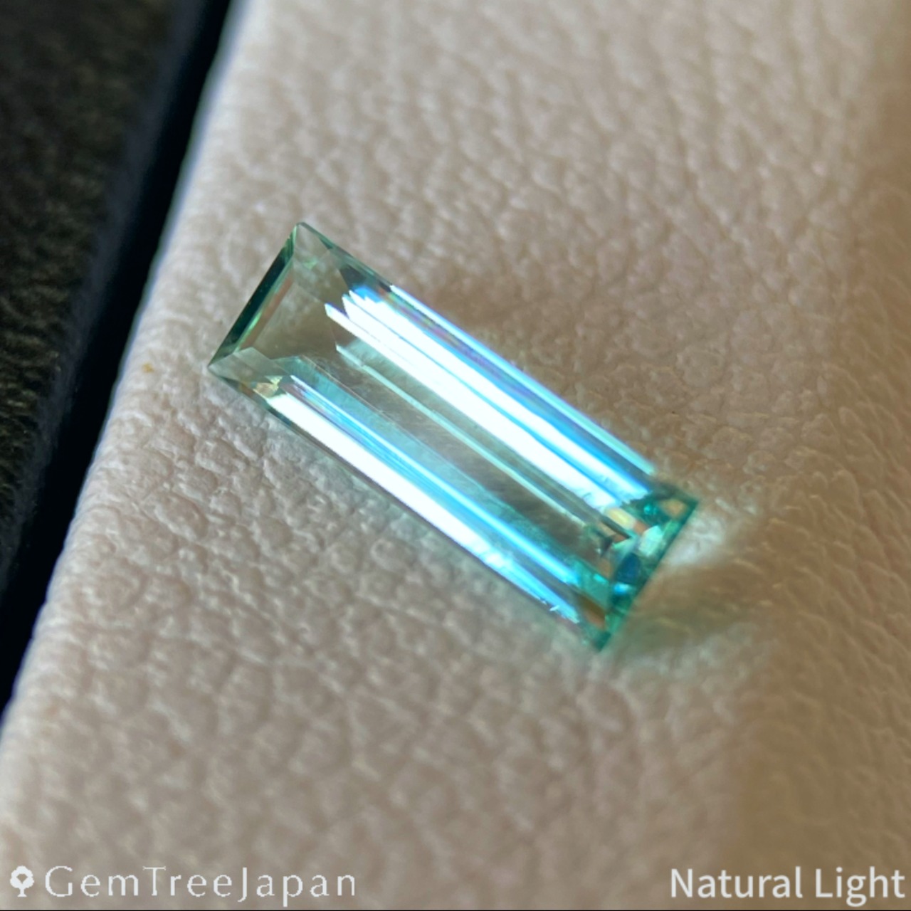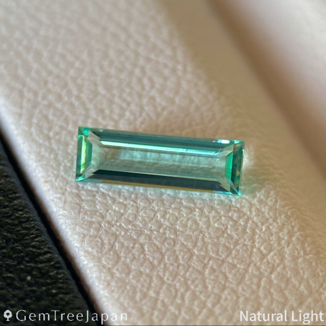 青みを感じる緑色が美しく、透明度が高いグリーンベリルにロングオクタゴン(長方形)を施した一石になります。大きさ、特に高さ(深さ)の割に色がきちんと乗っており、確かな緑色を体感できます。