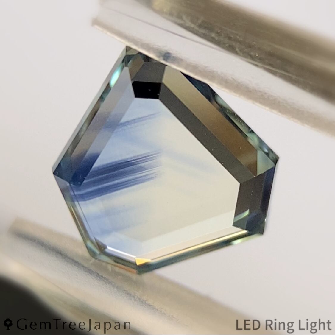 原石の形を活かした多角形のシェイプに仕上げ、厚みが控えめであったこととカラーバンドの個性も活かせるため、キューレットを作らず両面がフラットになっています。