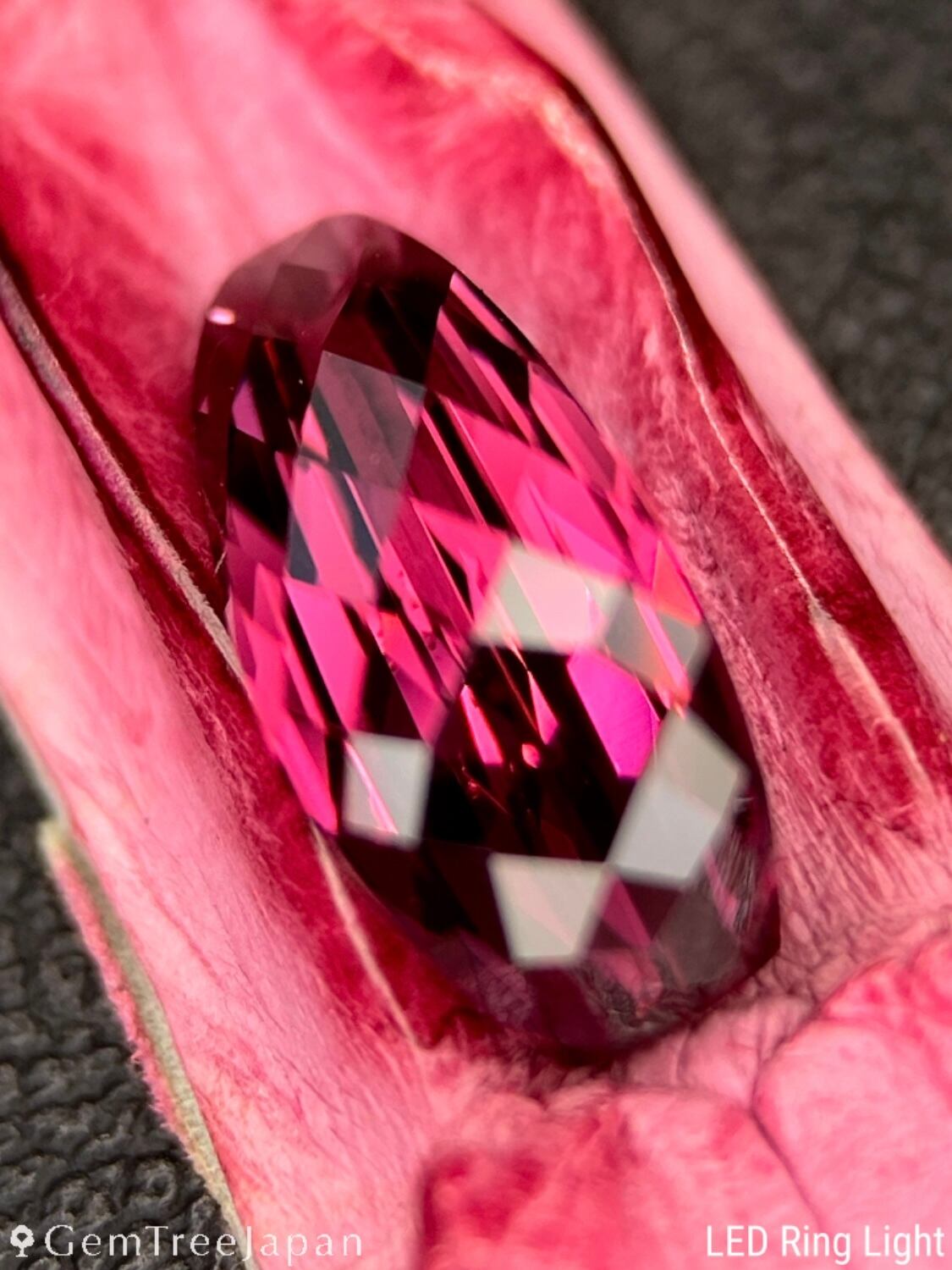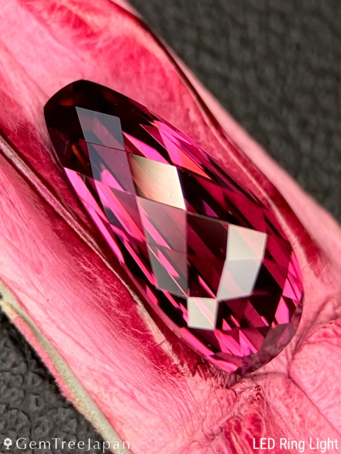 煌めきはピンクを基調としながらオレンジやパープルも混ざり合って、マラヤガーネットらしい多色感がお楽しみいただけます。