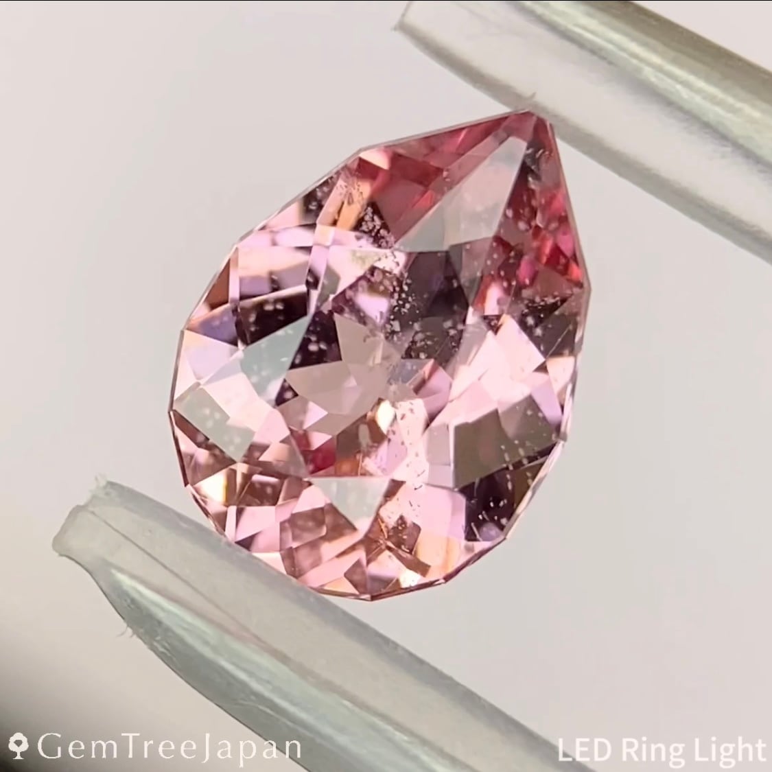 ペアシェイプ特有の先端に溜まるピンクがキレイで、全体からフラワーカットによる細やかな煌めきが溢れます。