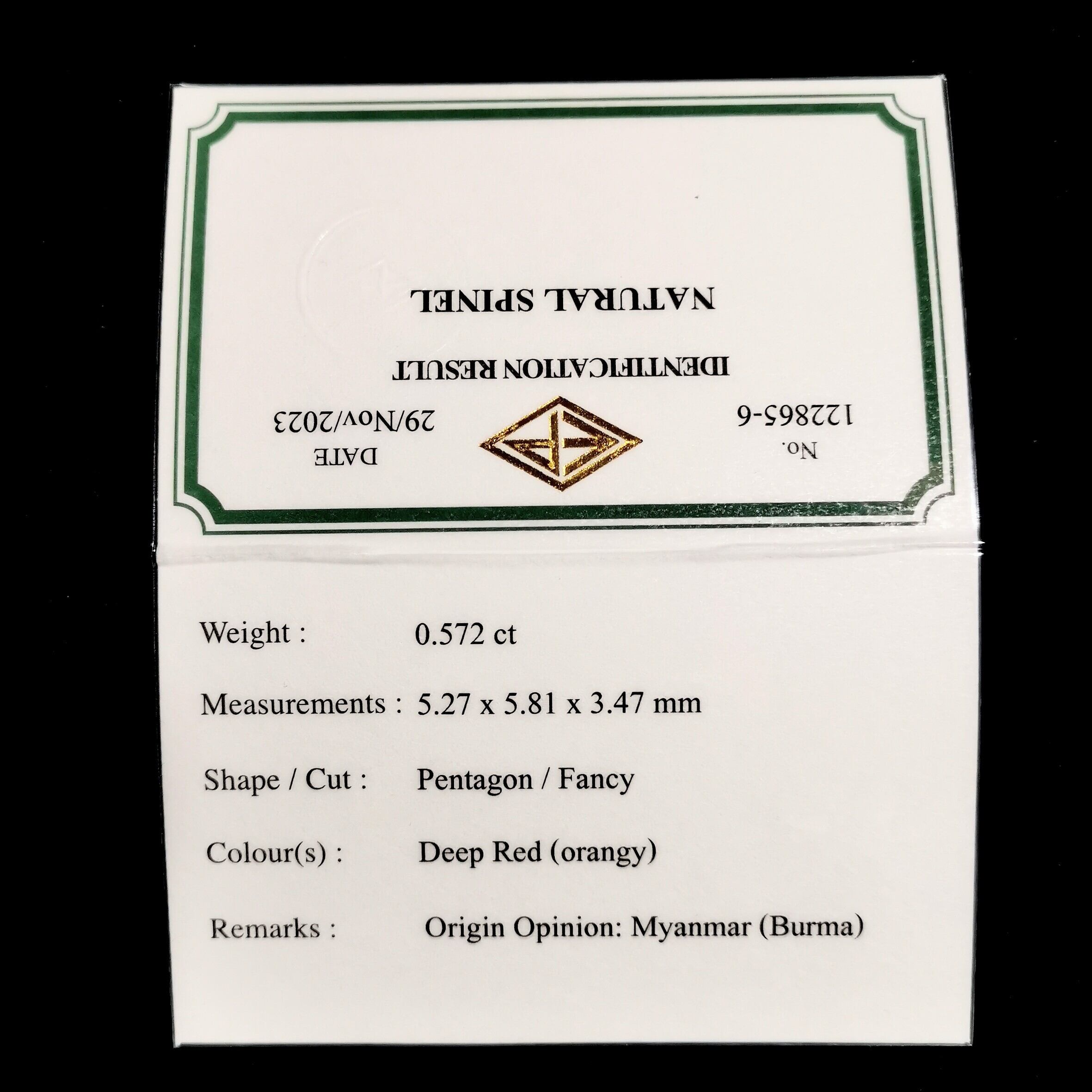 レッドスピネル 0.572ctオレンジーレッドのバランス良い王道感ある宝石形