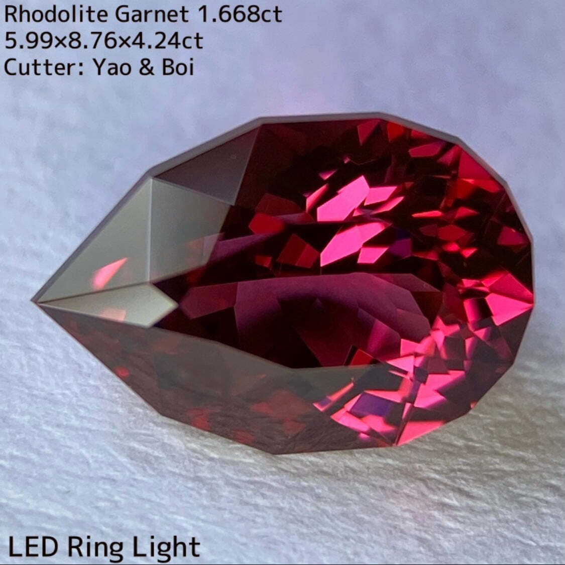 濃厚美色から美しいベリー系ピンクの乱反射する細やかな煌めき放つファンシーペアシェイプ★ロードライトガーネット1.668ct