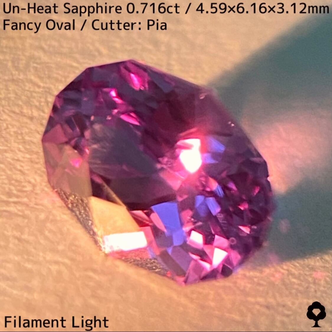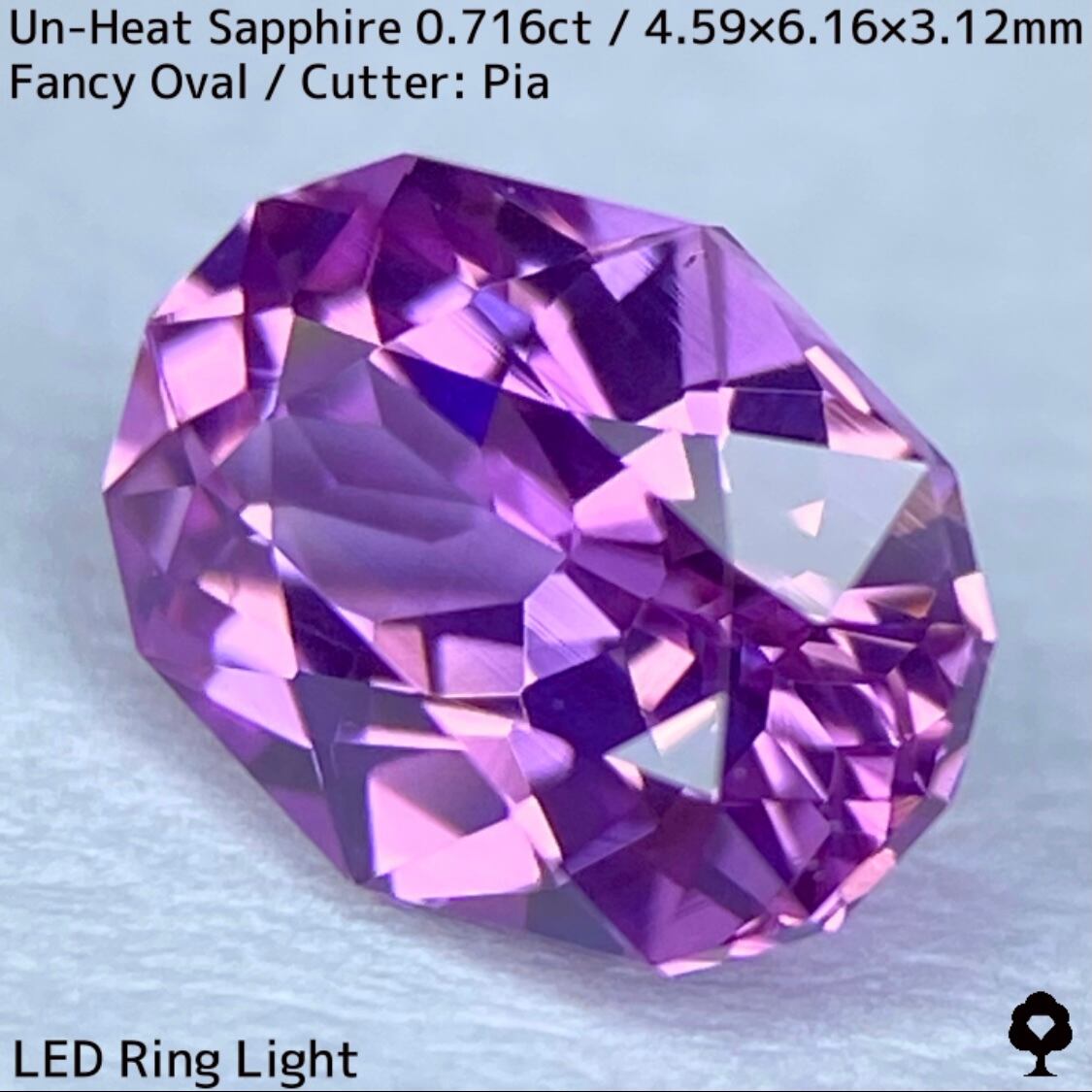 ピンキッシュパープルの美しい色合いの非加熱サファイアで、細かな内包物がわずかにあるものの肉眼では全く分からない、クリアな抜群の石質の一石です。