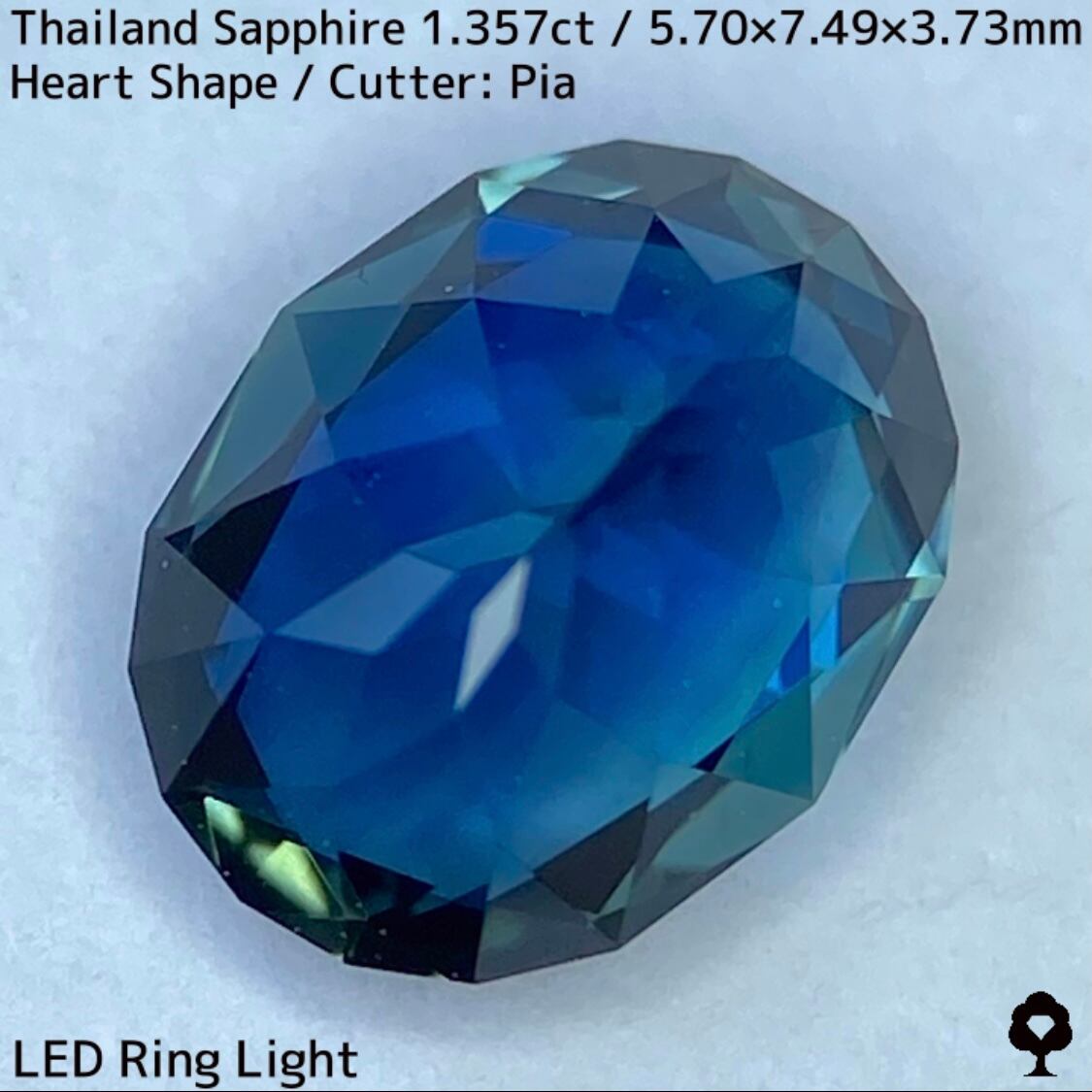 タイ産サファイア1.357ct★チャンタブリー仕入れのティールブルーとグリーンの混ざり合う美色結晶