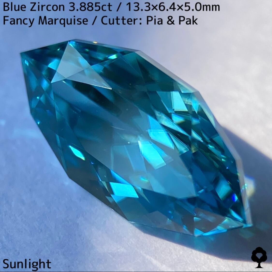 ブルージルコン3.885ct★ファイアー弾ける両端の色だまり美しいグリニッシュブルーの珍しいファンシーマーキス