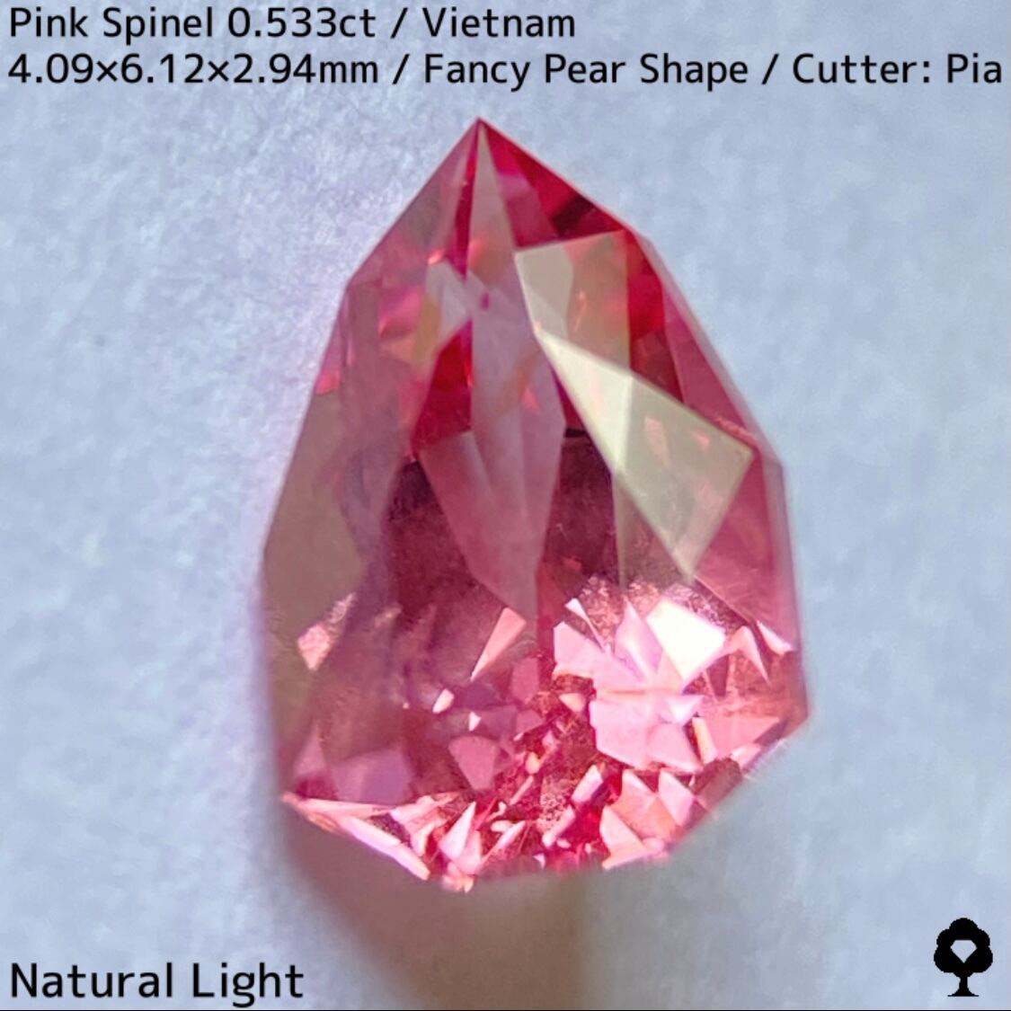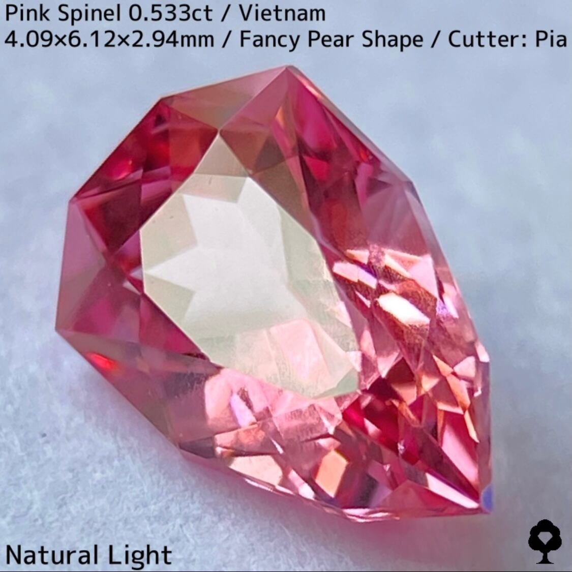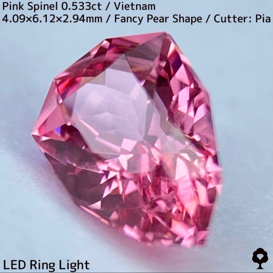 ベトナム産ピンクスピネル0.533ct★ツボミのような色だまり感美しいパパラチァカラーのペアシェイプ