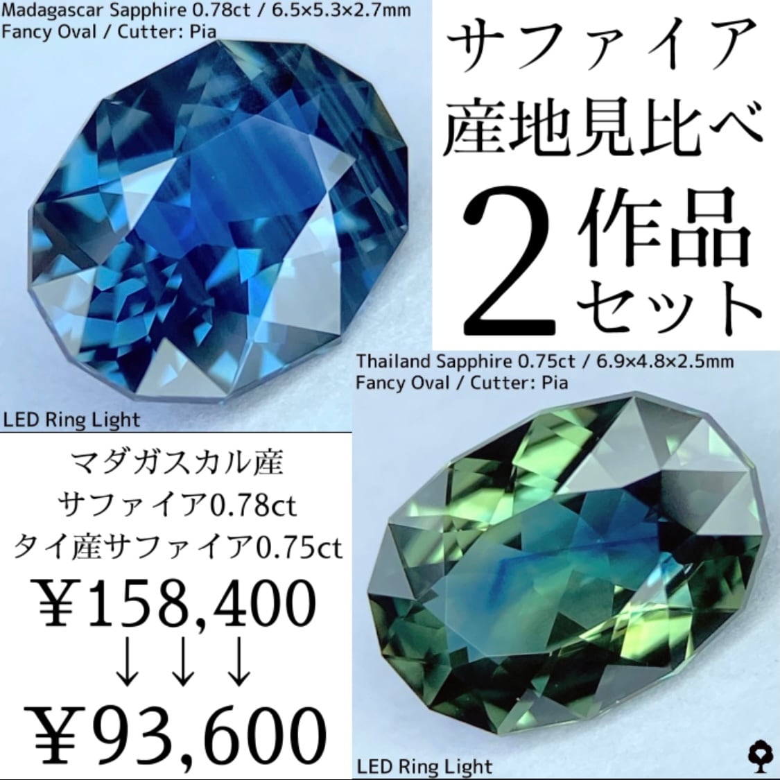 【サファイア産地見比べ2石セット】マダガスカル産サファイア0.78ct&タイ産サファイア0.75ct