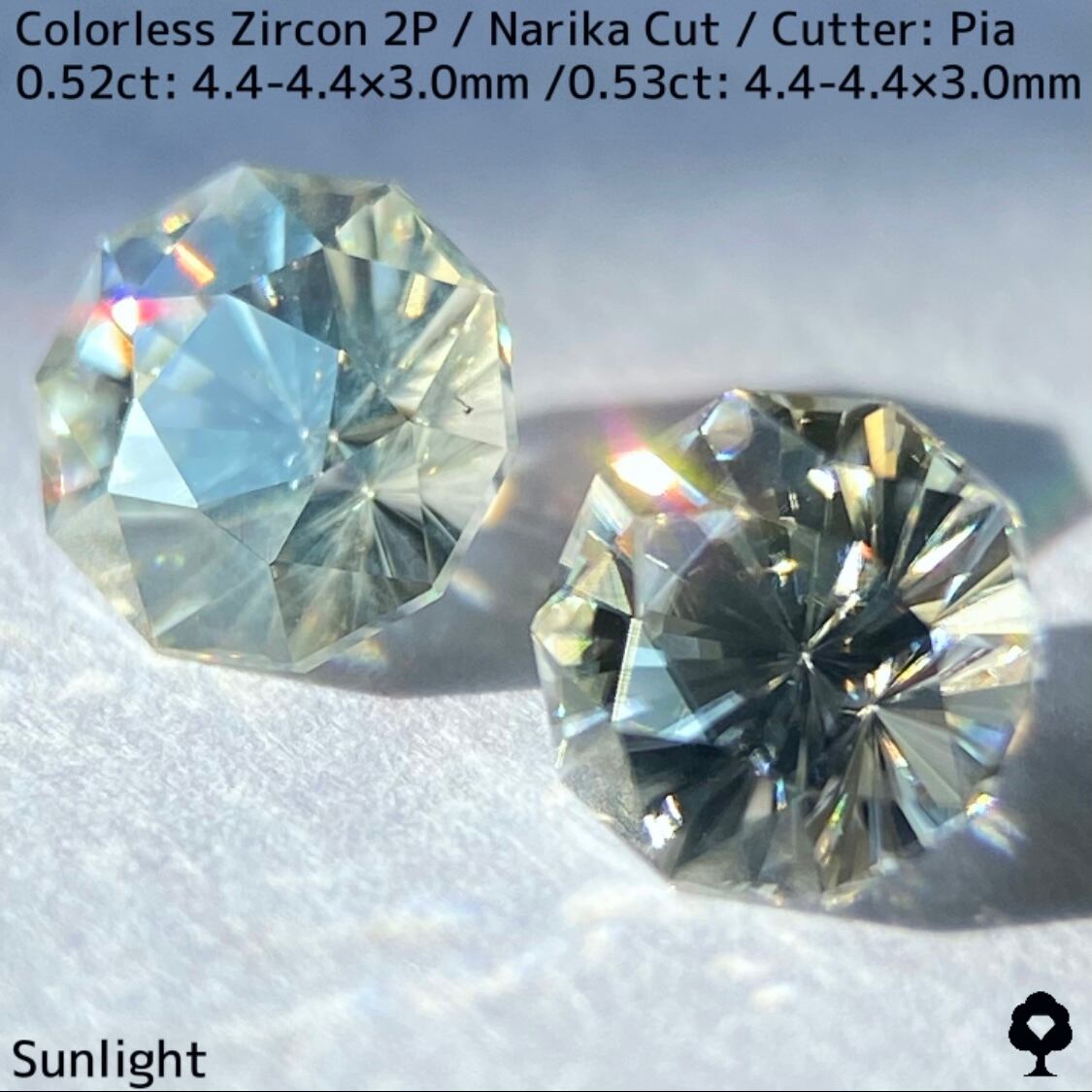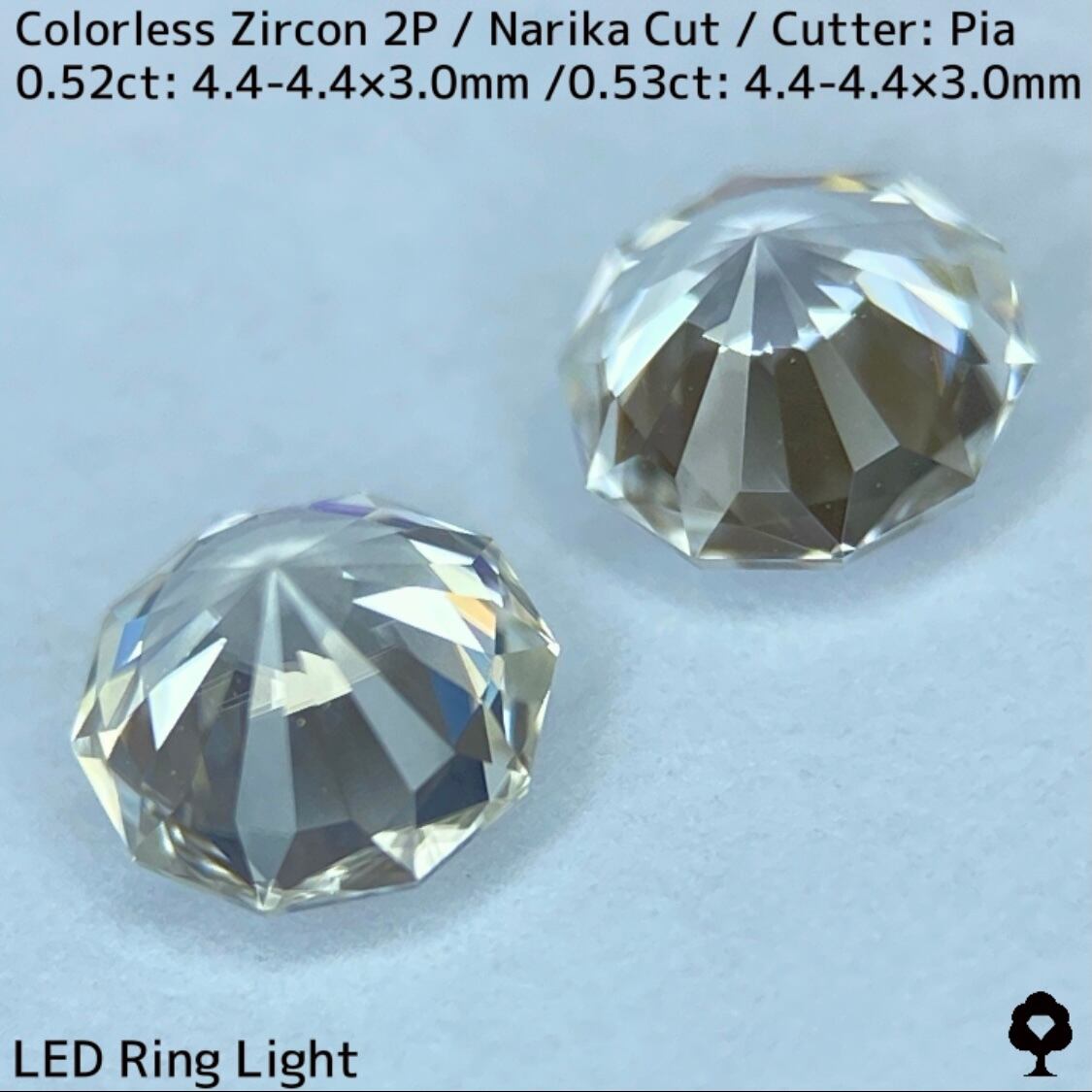 カラーレスジルコン2個セット計1.05ct★ほんのりシルキーとクリアな結晶の見比べセット