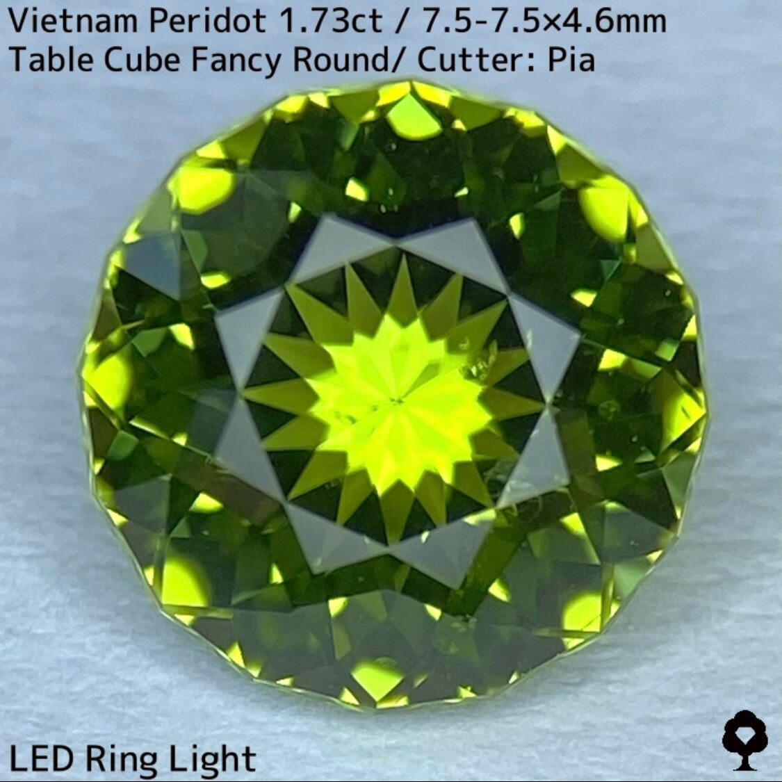 ベトナム産ペリドット1.73ct★リリーパッド浮かぶ万華鏡のような美しいフラワーカット美色結晶