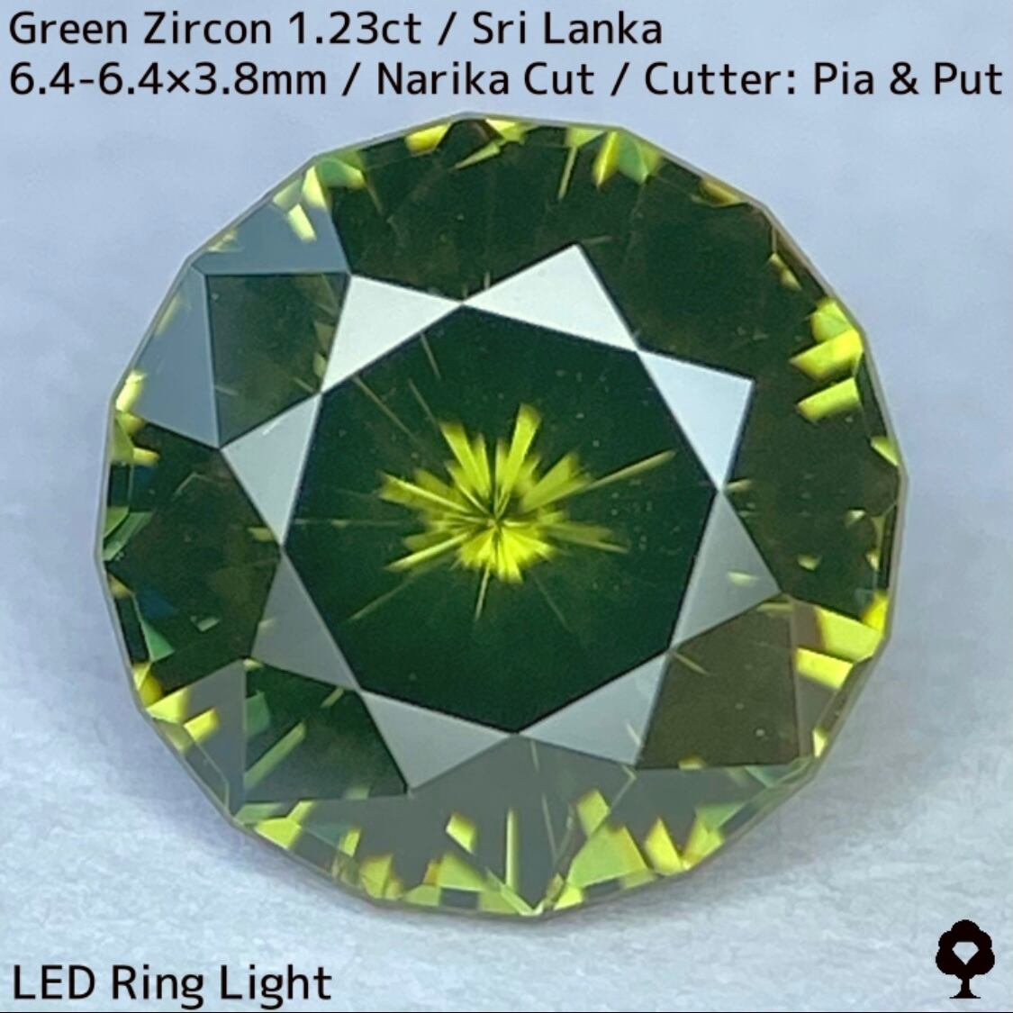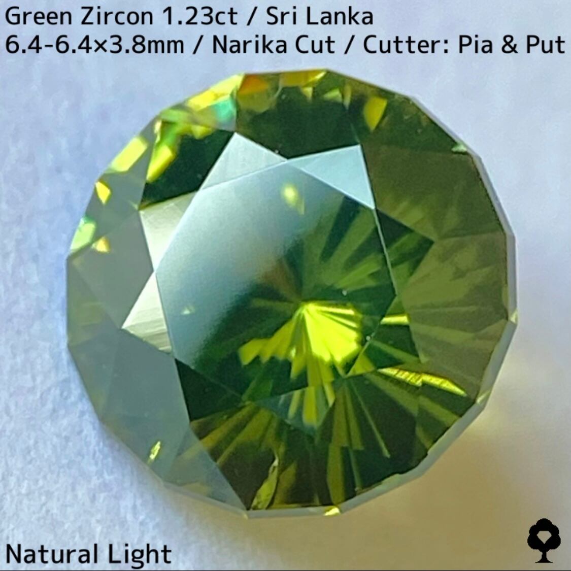 スリランカ産グリーンジルコン1.23ct★ほんのりシルキーなオリーブグリーンからナリカーカットの鋭い煌めきとファイアーを放つ