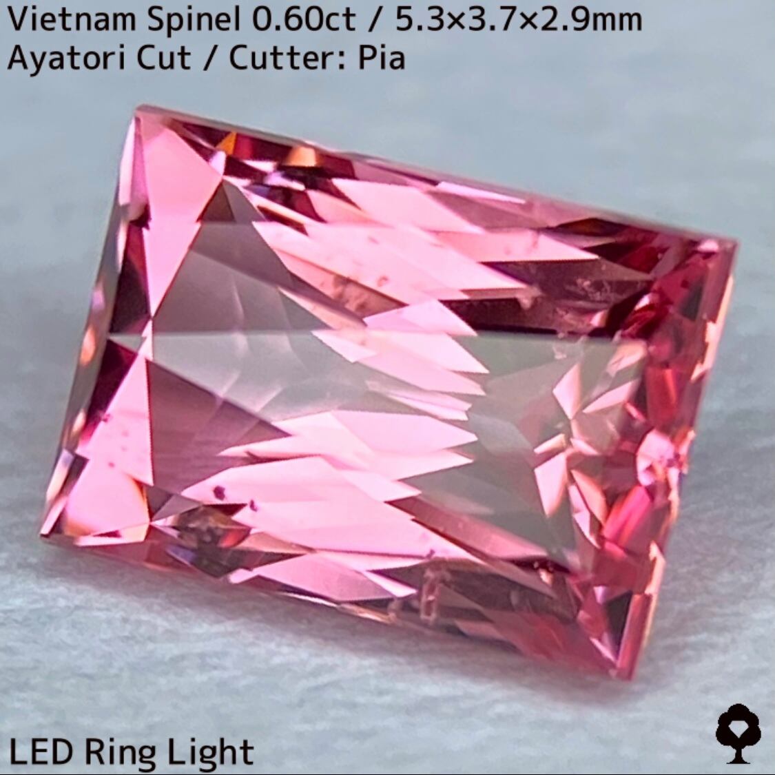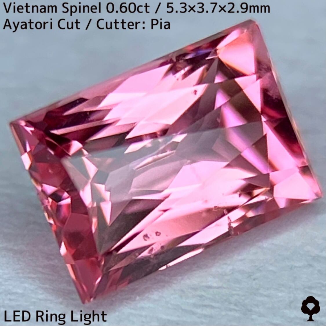 ベトナム産スピネル0.60ct★原石からつくりあげたパパラチァカラーのあやとりカットは可愛すぎ
