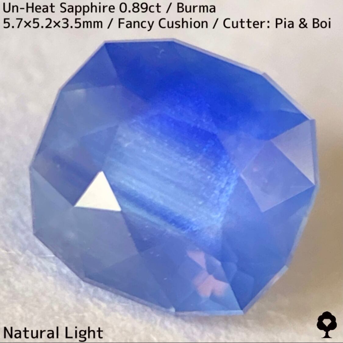 ビルマ産のプリフォーム原石から仕上げた非加熱サファイアで、ふんだんに入っているシルクインクルージョン・カラーバンド・発色の良い色だまり・不思議な色の煌めきなどサファイアの面白さと美しさが詰め込まれた一石です。