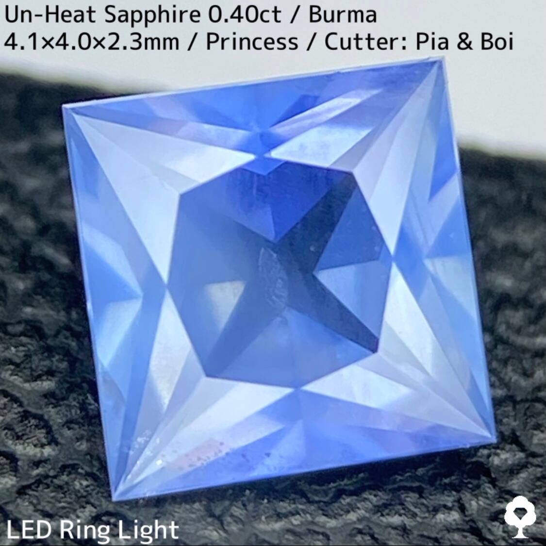 ビルマ産のプリフォーム原石からつくりあげた非加熱サファイアで、半分シルキーなライラックライトブルーの可愛いカラーの一石を、希少ビルマ産サファイアを抜群のプリンセスカットに仕上げました。