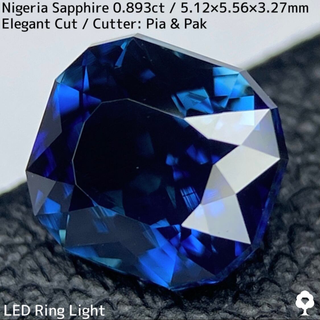 ナイジェリア産サファイア0.893ct★ディープカラーに潜む鮮やかな美ブルーがたまらないエレガントカット