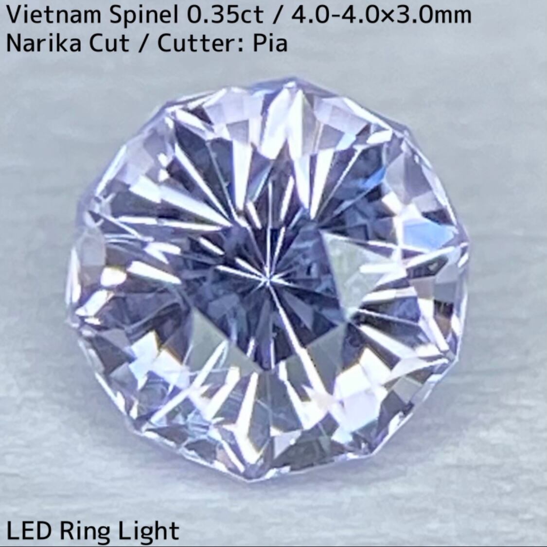 ベトナム北部産のスピネルでライトヴァイオレットの凛とした雰囲気を持った一石を、タイ語で時計を意味するナリカーカットに仕上げました。