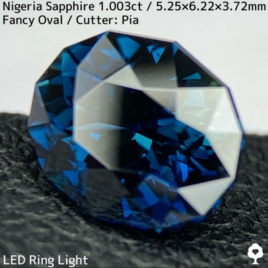 ナイジェリア産サファイア1.003ct★ディープなロイヤル系ブルーにグリーンが混ざり煌めくティールブルー