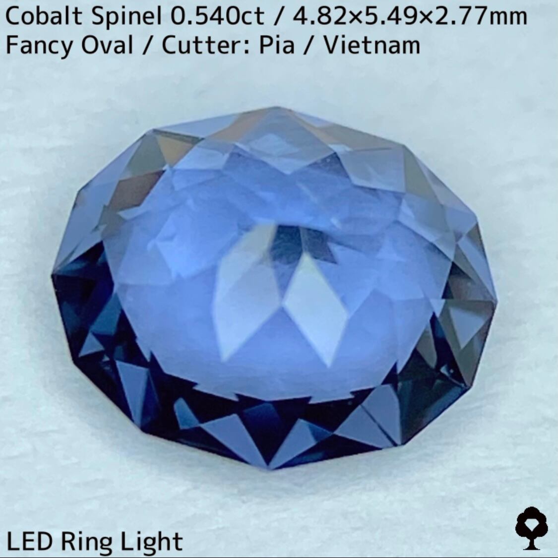ベトナム北部産のコバルトスピネルで、分光検査によって鉄とコバルトが認められ、深みのある地色から鋭いヴァイオレットとグリニッシュブルーの煌めきが溢れます。