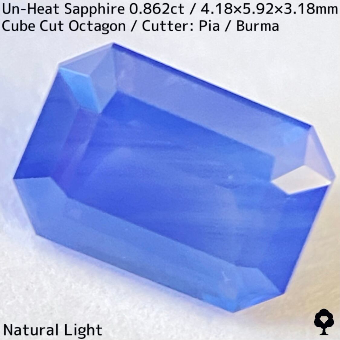 ビルマ産の原石をスリランカで仕入れ、現地でプリフォームしてバンコクで仕上げた手間のかかった非加熱サファイアで、半透明なシルキーブルーが柔らかく可愛い作品です。