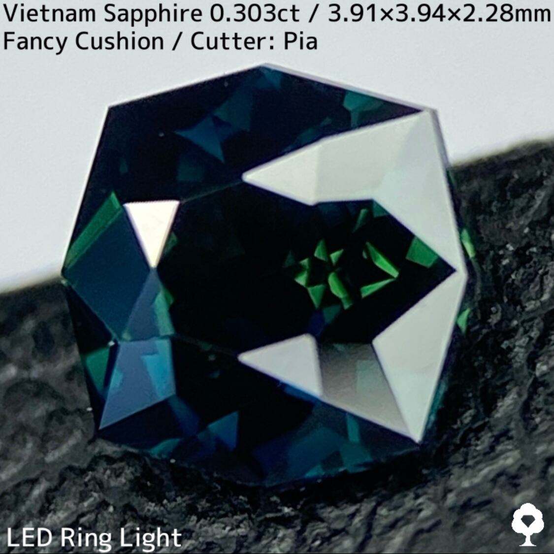 ベトナム産サファイア0.303ct★グリーン強いインディゴ系ディープカラーの軽いパーティ感あるベトナム中部鉱山産