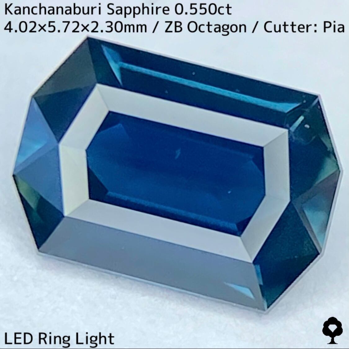 カンチャナブリー産らしいスリーピーな雰囲気で、ブルーに対してライトイエローが加わったグリニッシュブルーの地色からステップカットの直線的な煌めきが放たれます。