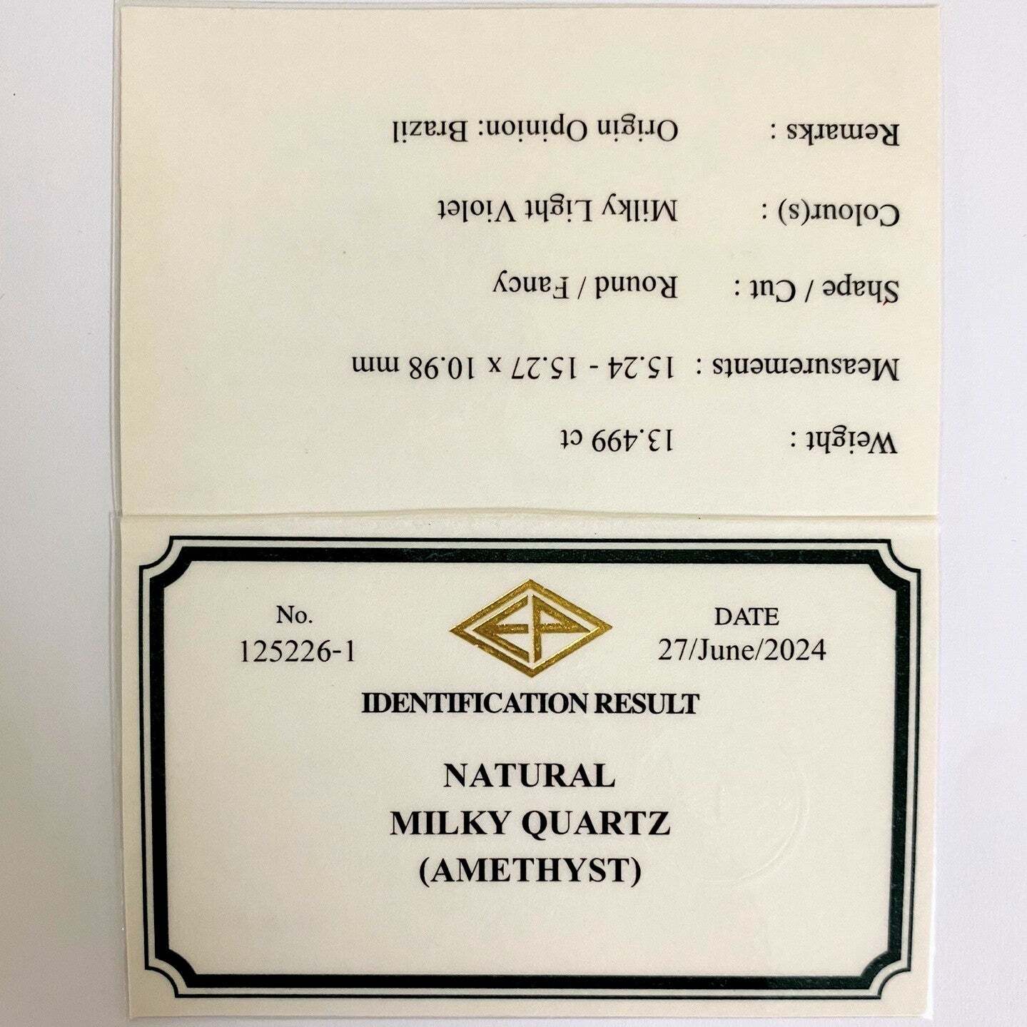 13ctアップの大粒の全体がミルキーな石質からオレンジの煌めきが溢れるミルキーアメジストで、バフトップにフラワーカットが浮かぶ、テーブルもバフトップの新カットです。