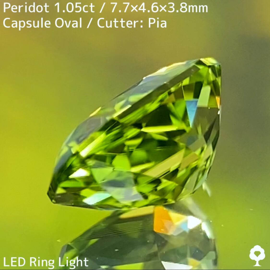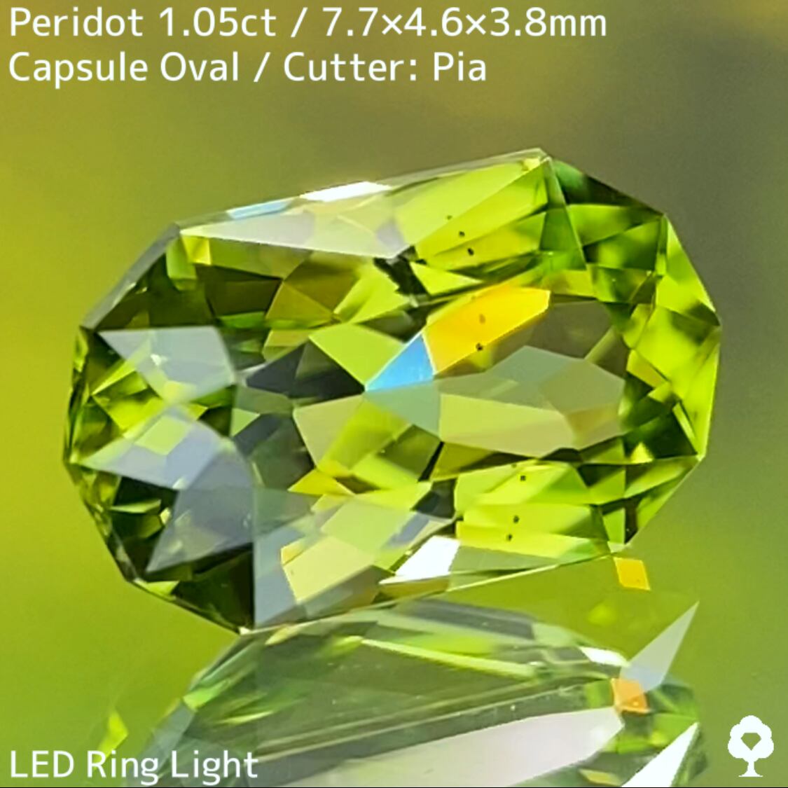 煌めきの強いラディアント系のカットが施されており、ペリドットってこんなに煌めくのかと感じていただけると思います。