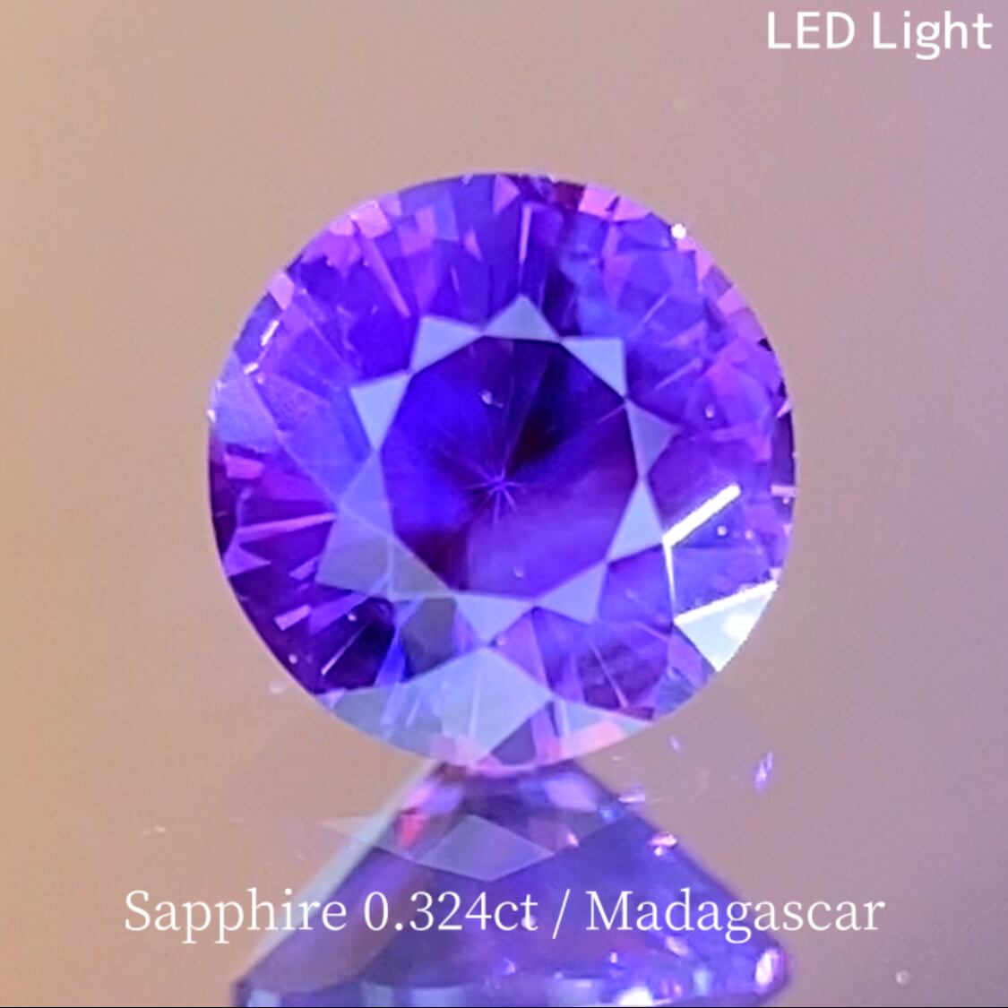 美しいパープルにブルーの色だまりが入る深い地色から鮮やかな煌めきを放つマダガスカル産サファイアです。