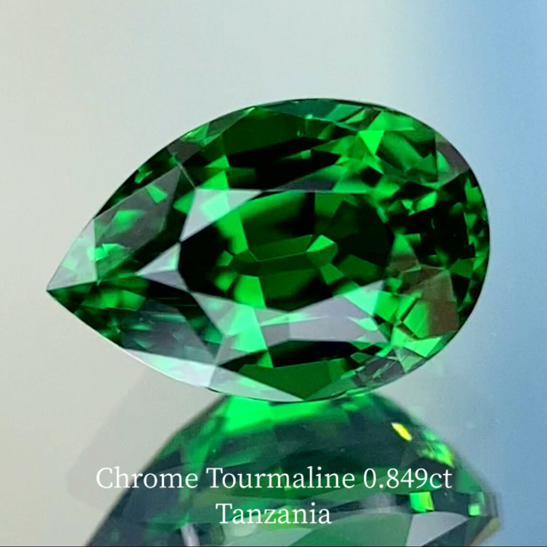 一級品ツァボライトのような濃厚で鮮やかなグリーンのようなクロムトルマリンで、クロムによる鮮やかな発色がカメラに写りきらない逸品です。