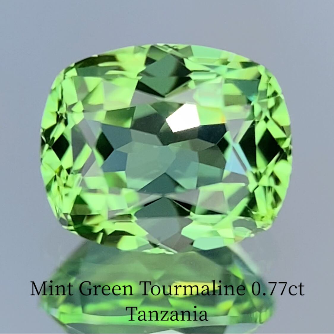 爽やかな超美色ミントグリーンのタンザニア産トルマリンで、端正なクッションシェイプに仕上げた一石です。