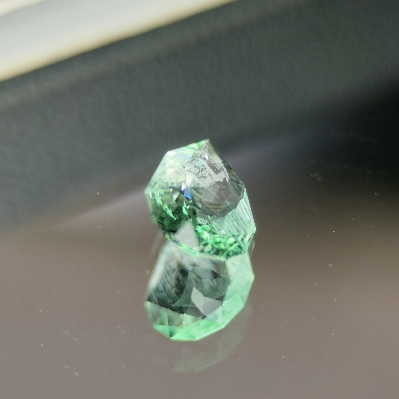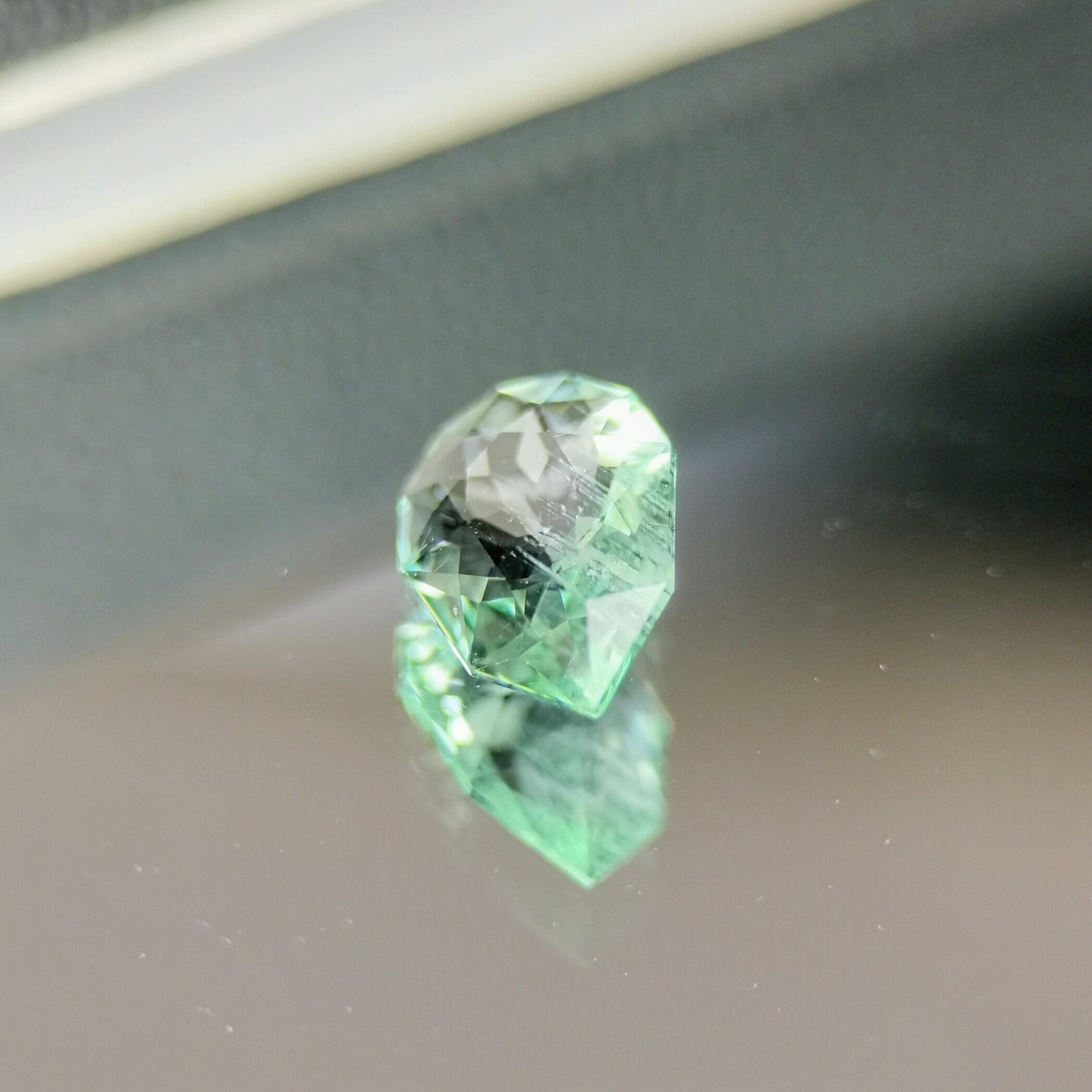 ミントグリーンの爽やかな色合いが美しく、全体としてかなりクリアな結晶で、斜めに入るライン状の内包物もいい雰囲気です。
