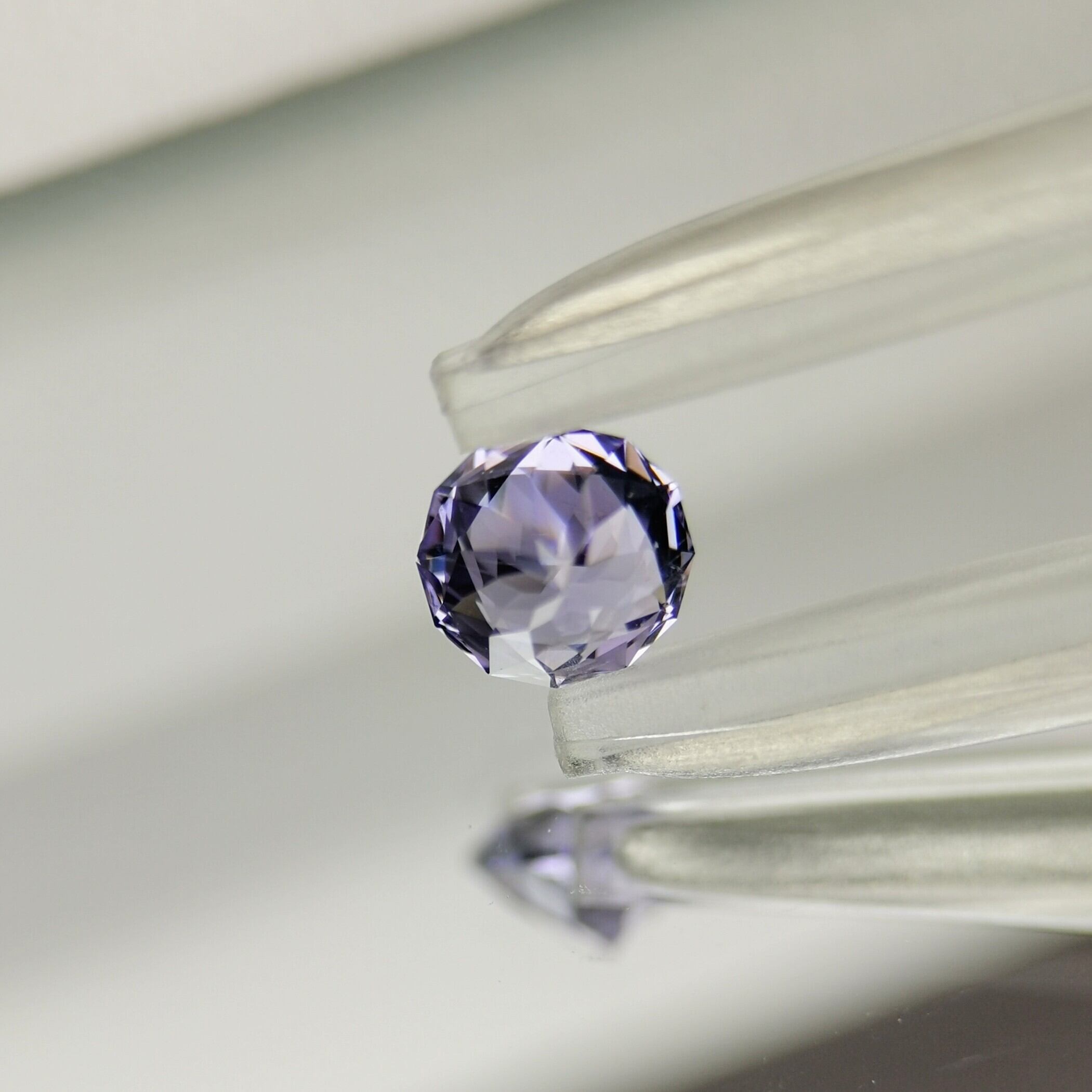 ラベンダーカラーのベトナム北部ルックイェン産のコバルトスピネルで、輪郭を細かく縁取ったファンシーラウンドに仕上げられた作品です。
