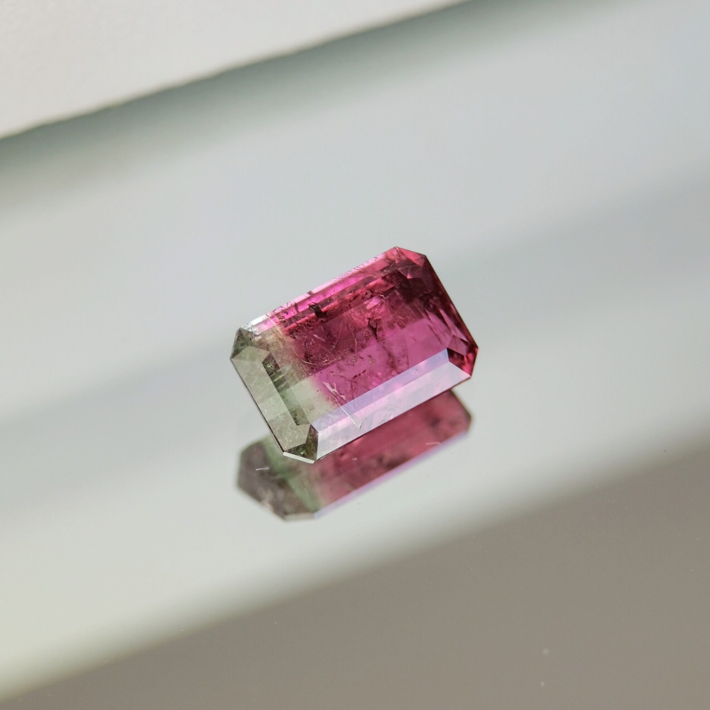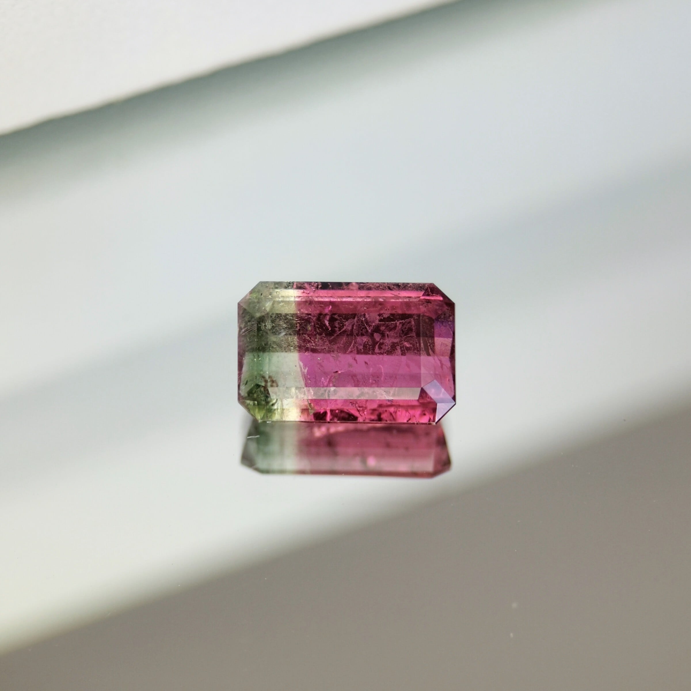 カーキグリーンとピンクのブラジル産バイカラートルマリンで、端正なオクタゴンに仕上げられた作品です。