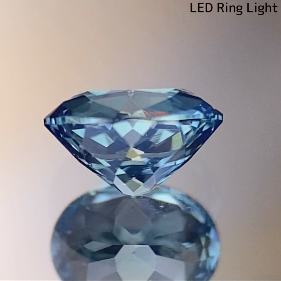 端正なオーバルシェイプに仕上げられ、クラウン側のテーブルの周りに箱の形が浮かぶGTJオリジナルのテーブルキューブカットが施されて、パビリオン側のフラワーカットの細やかな煌めきにシャープな印象を与えています。