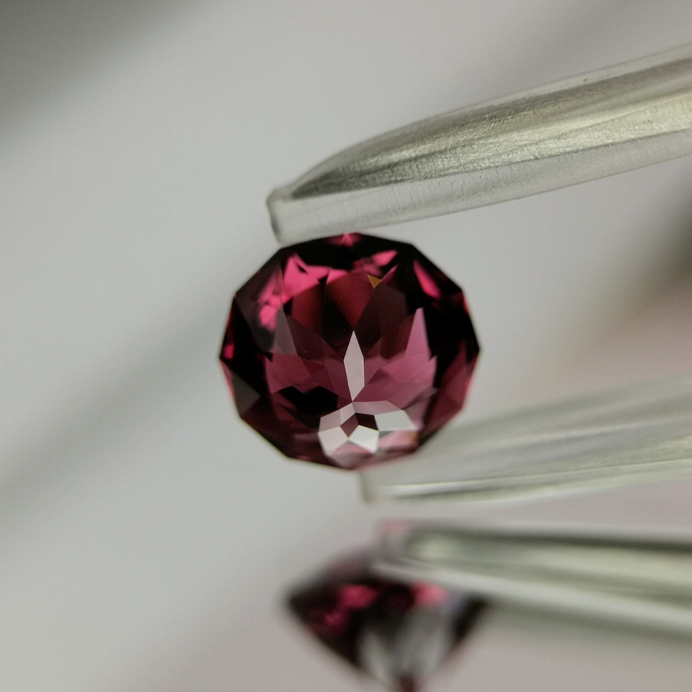 フラワーカットによる細やかな煌めきにはピンク・オレンジ・パープル・レッドが感じられ、特に自然光で見た時の色の重なりと混ざり合いが非常に美しいです。