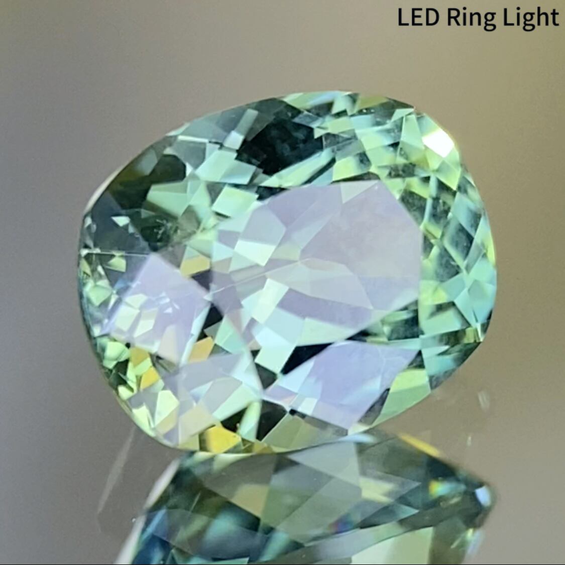 片側に金色のもやの内包物があり光に当たると光ますが、肉眼では全く分からないレベルです。