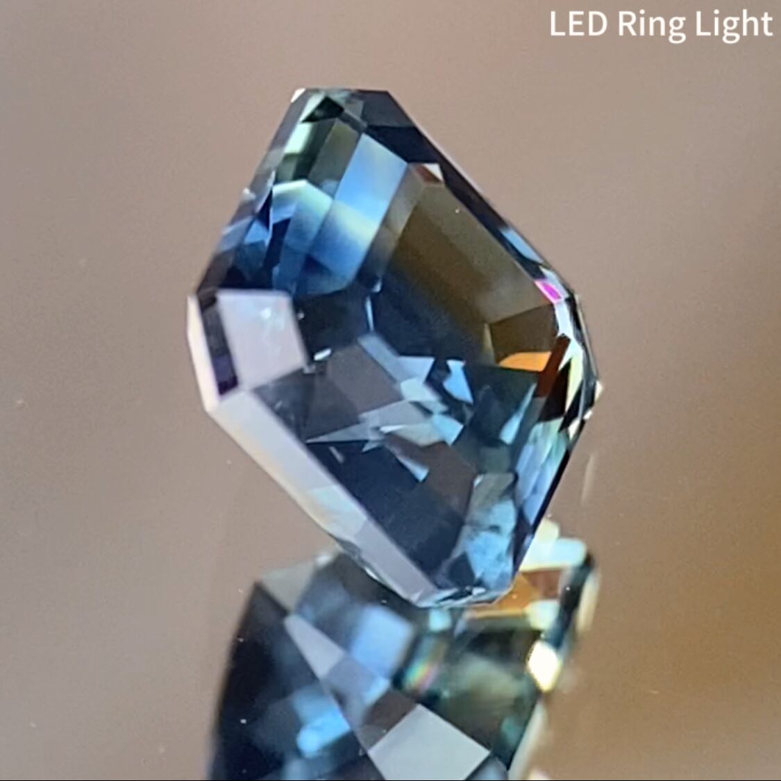 シンプルなステップカットですが、クラウン側のテーブル周りに細いファセットを加え、言われなければ分からない工夫によるさりげないこだわりを感じていただけると嬉しいです。