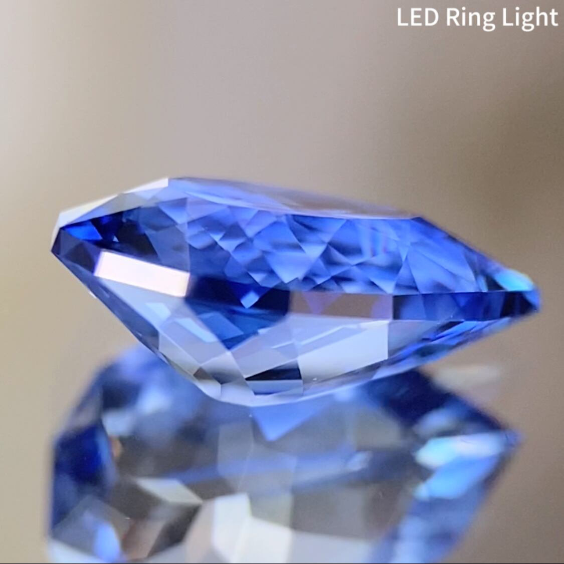 スリランカ産らしい華やかなブルーのゾーンととカラーレスのゾーンが混ざりあいブルーの明度のグラデーション感ある煌めきが楽しめます。