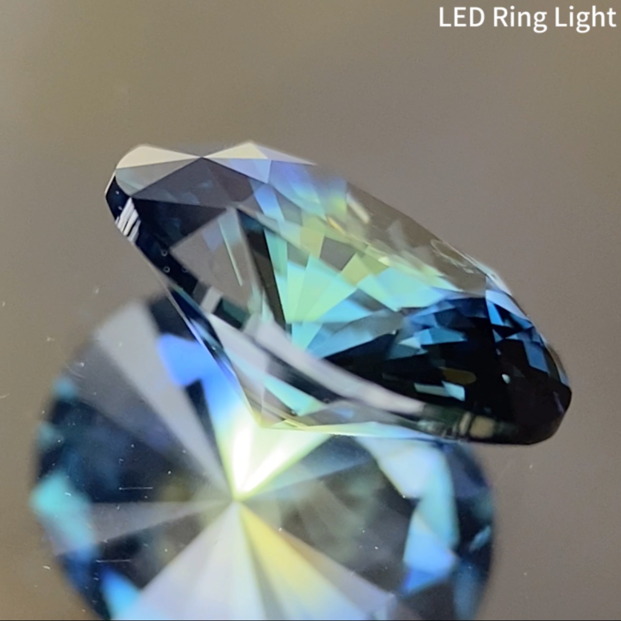 プロポーション的に厚みのないタイプですが抜け感はなく、鋭いカットということもあって場面が大きく2ctに見える迫力があります。